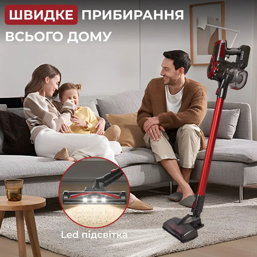 - Вертикальний та ручний режим. Вертикальний пилотяг допоможе прибрати будь-який куточок у вашому будинку. Стандартне положення пилососа з основною насадкою забезпечить потужне всмоктування бруду. Ви з легкістю приберете крихти на кухні, волосся з килимка у ванній, пил під диваном та багато іншого.