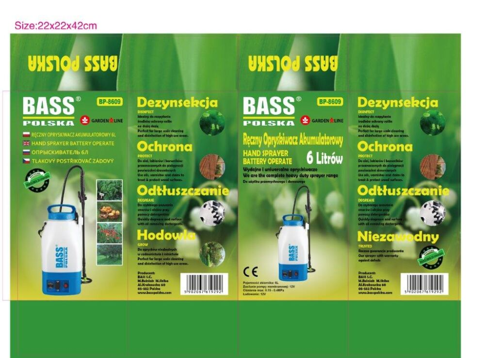 - Акумуляторний садовий обприскувач Bass Polska – універсальний багатофункціональний садовий інструмент для догляду за рослинами. За допомогою обприскувача Bass Polska ви забезпечите комплексний догляд за своїми рослинами - садовий пристрій дозволяє обприскувати рослини в сільському господарстві, садівництві, на присадибних ділянках і городах, а також знежирювати, розпорошувати засоби для боротьби з комарами і мошками, розпилювати хімікати для об'єму. Завдяки невеликому об'єму бака обприскувач Bass Polska стане незамінним при догляді особливо ніжних рослин, наприклад, за деревами бонсай.