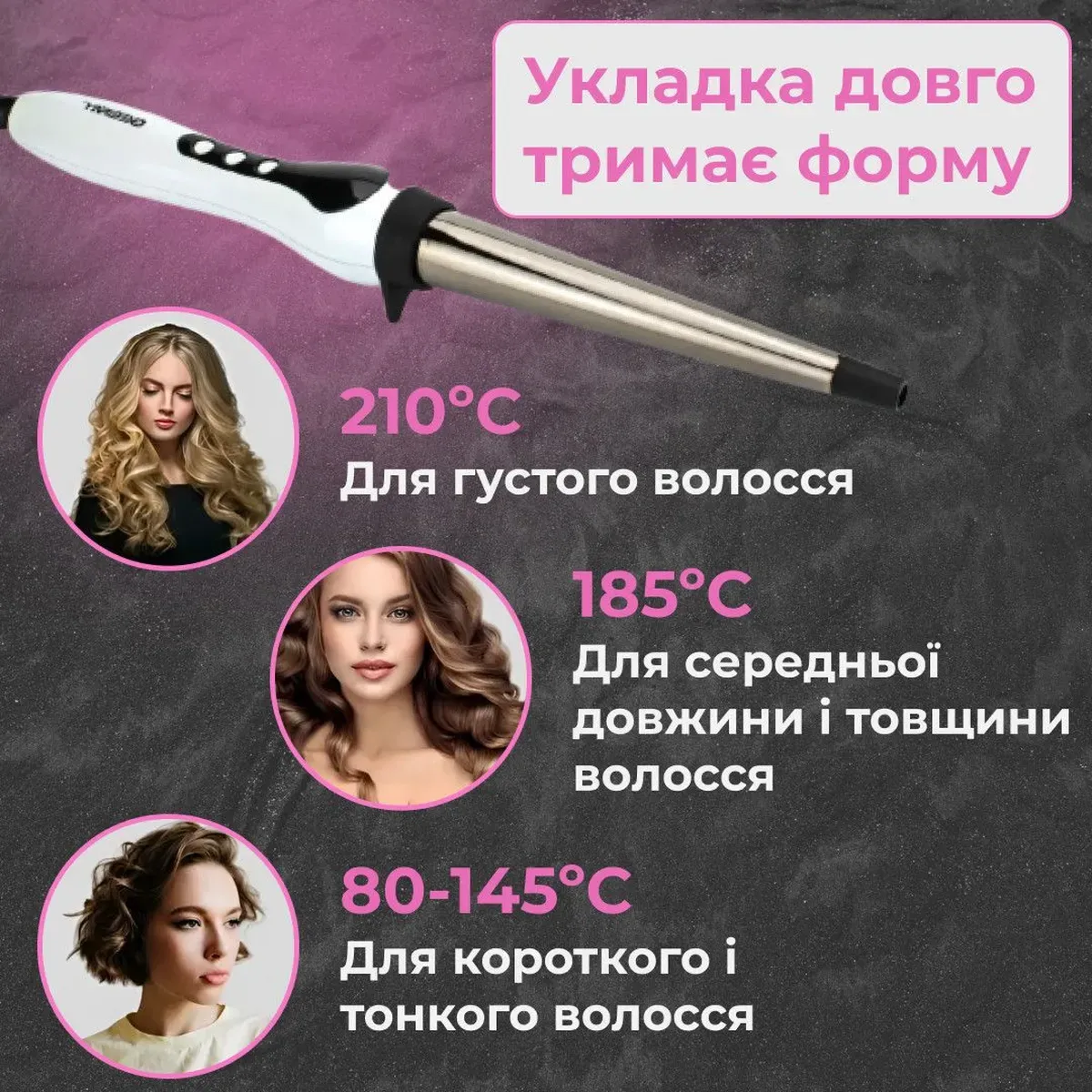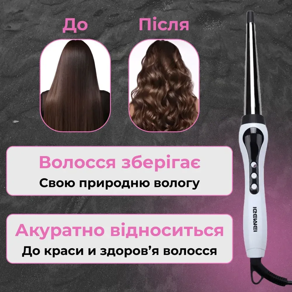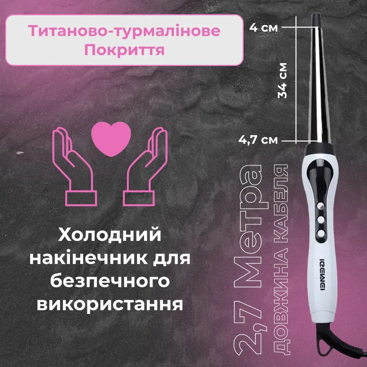 Плойка для волосся конусна професійна LED дисплей та титаново-турмалінове покриття Geemy GM-403 (GM403W)