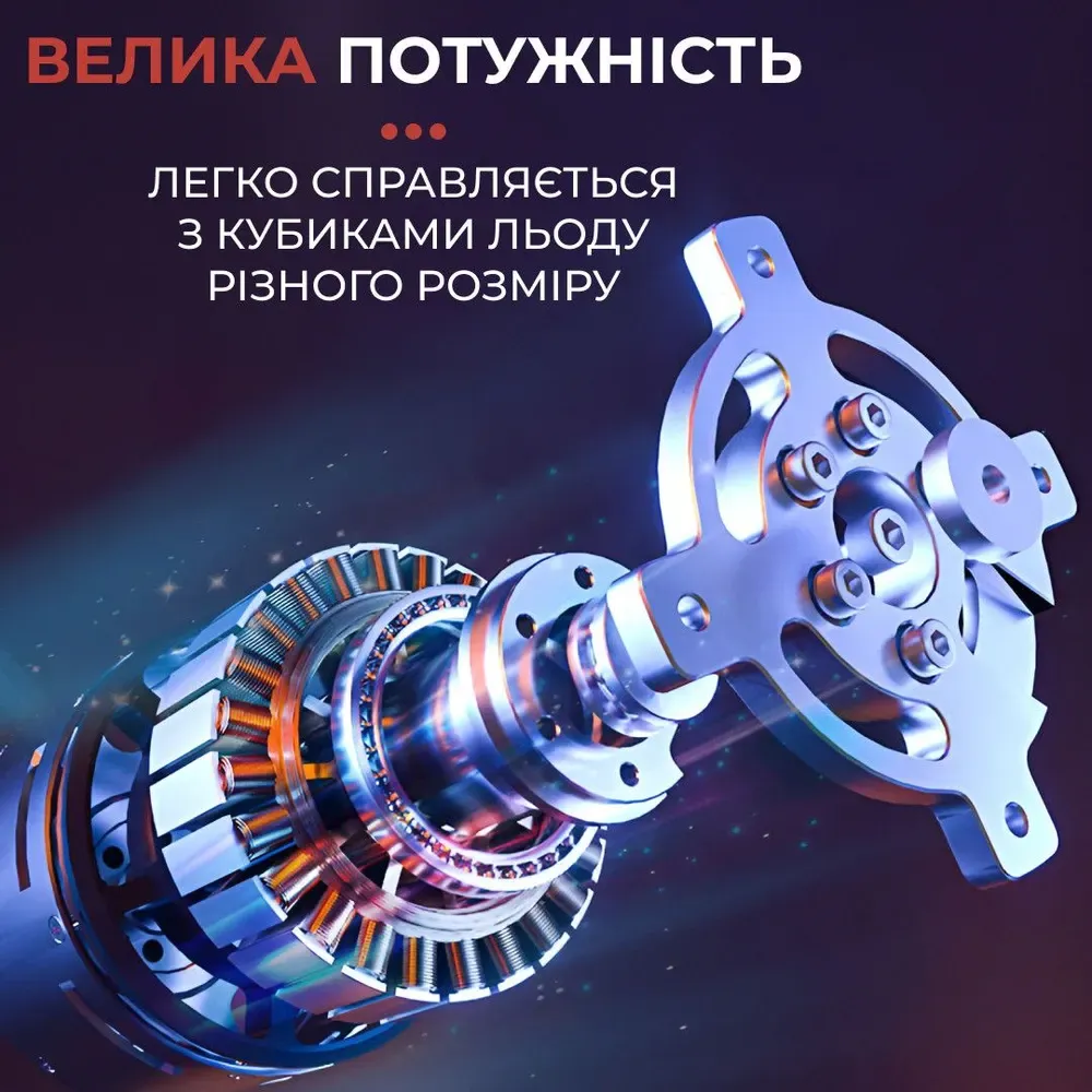 - Об'єм контейнера 800 мл. Великий контейнер дає змогу вам подрібнювати достатню кількість льоду для кількох порцій напоїв одразу.