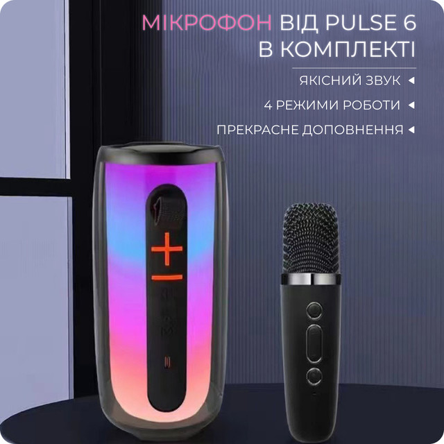 Бездротова колонка Pulse 6 з мікрофоном: Зробіть свої вечірки яскравішими з потужним звуком і безмежною свободою!