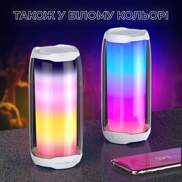 Портативна колонка Bluetooth Pulse 4 з підсвіткою та світломузикою USB Type-C/AUX 10 Вт Білий (PULSE4W)