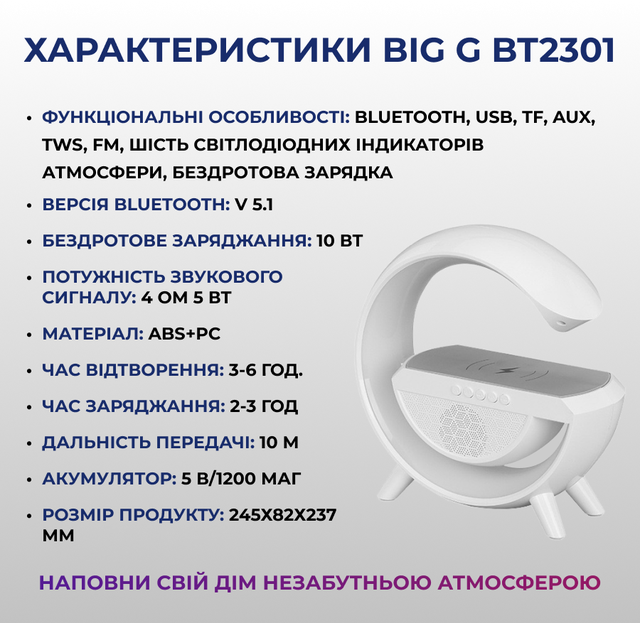 Отримайте безліч функцій в одному стильному пристрої - нашій багатофункціональній лампі-нічнику Big G BT2301!