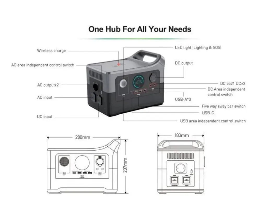 Портативна зарядна станція - це прилад для мобільного заряджання та роботи окремих пристроїв на обмежені можливості станції. Використання станції для стаціонарного живлення електрикою квартири, будинку заборонено і може призвести до займання.