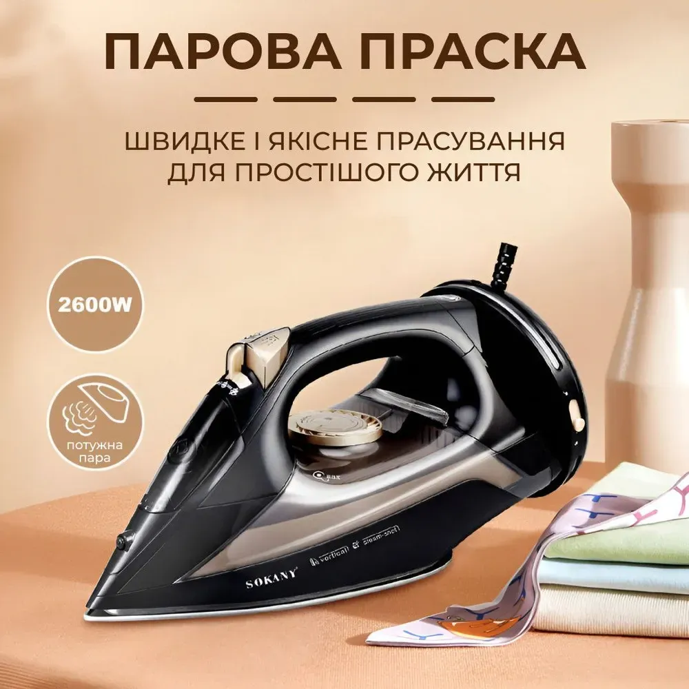 Праска парова ручна з антипригарним покриттям 2600 Вт з керамічною підошвою SOKANY SK-286 (SK286B)