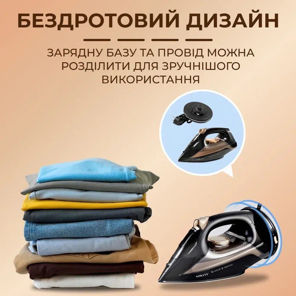 Бездротова парова праска SOKANY SK-286 – надійний та потрібний помічник для кожної господині. Використовується якісна та надійна електроніка, корпус виконаний із міцного зносостійкого пластику. Керамічна підошва стійка до подряпин, добре ковзає та зручна у використанні.