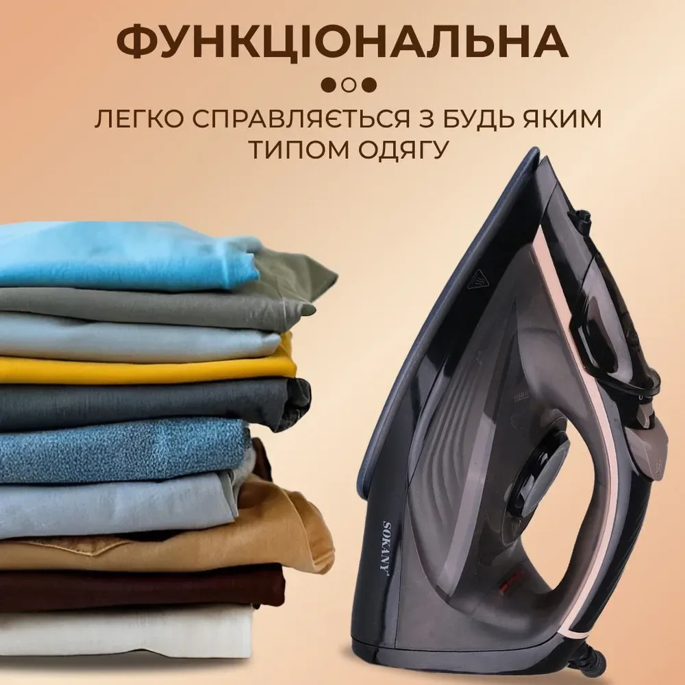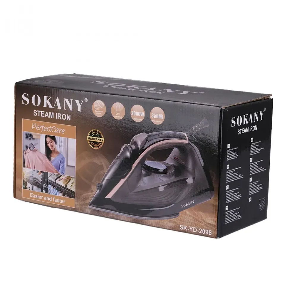 Праска парова з антипригарним покриттям 2000 Вт праска керамічна з системою самоочищення SOKANY SK-YD-2098 (SKYD2098B)