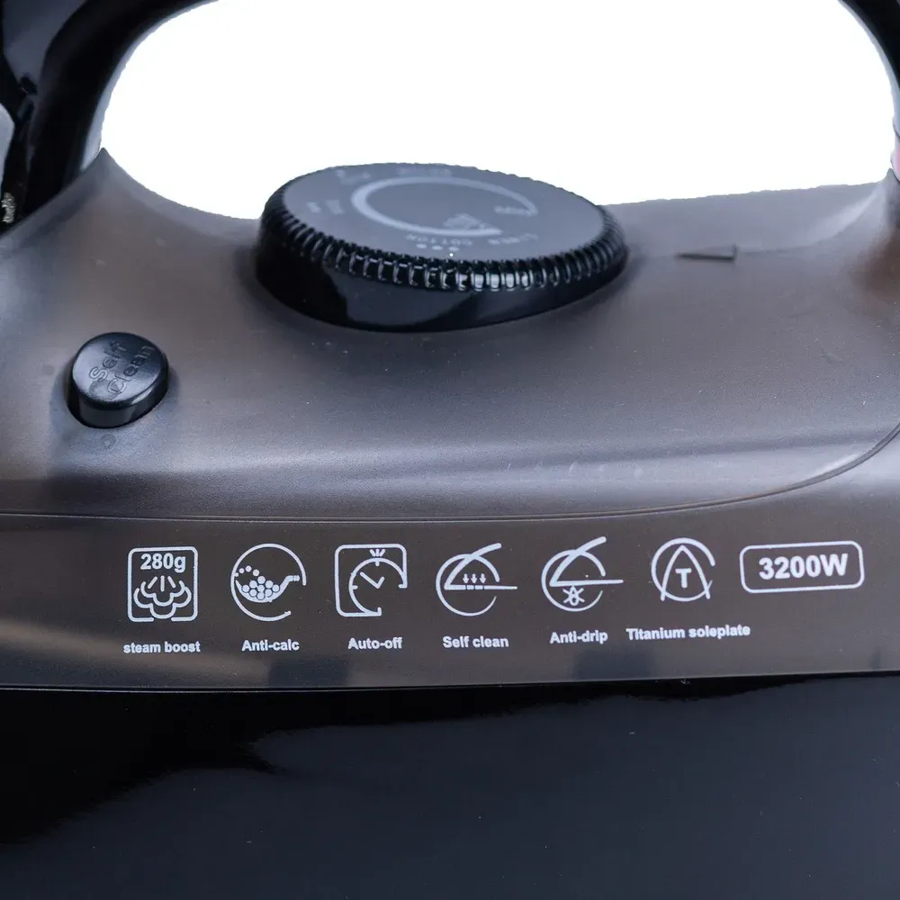 - Потужність. Праска має високу потужність 3200 Вт, що забезпечує швидке прогрівання й ефективний розподіл пари для ідеального прасування.