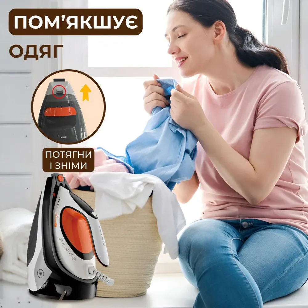 - Швидке видалення складок. Праска забезпечує швидке та ефективне видалення навіть найскладніших складок, піддаючись вашому контролю.