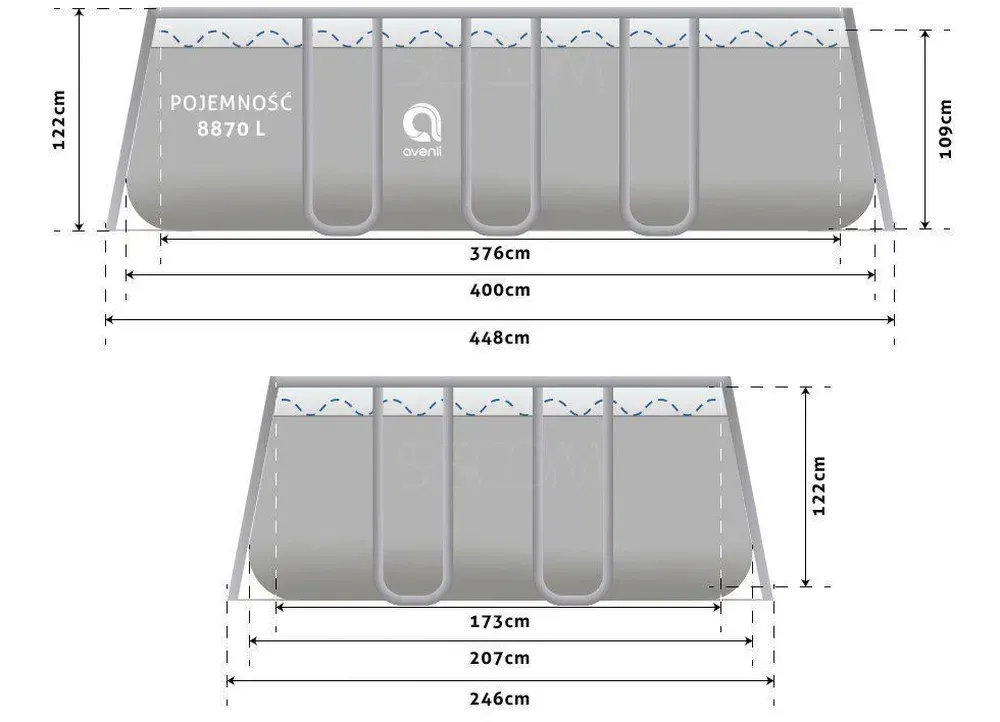 Садовий каркасний басейн Avenli розміром 400 см х 207 см х 122 см характеризується: