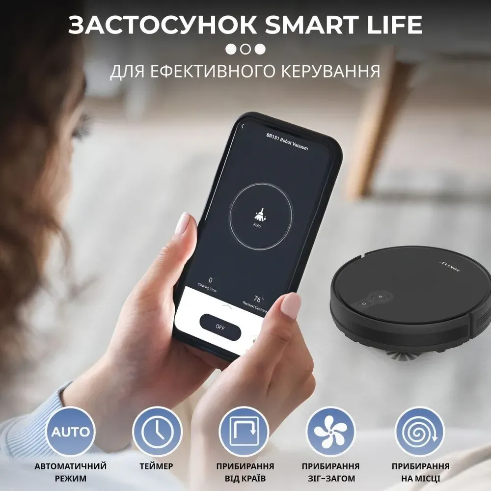 - Робот-пилосос 2 в 1 стане вашим надійним помічником у підтримці чистоти в домі, забезпечуючи автоматизований і ефективний процес прибирання.