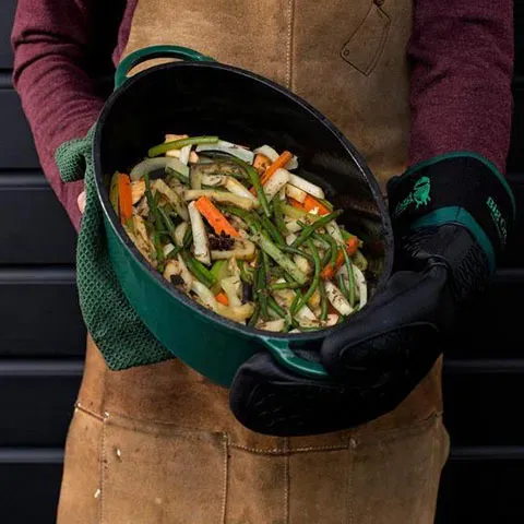 Бренд: Big Green Egg Виробник: США Характеристики: Матеріал: силікон (верхня частина), бавовна і поліестер (внутрішня частина) Розмір: універсальний Особливості: Якісний захист від високих температур до 232 градусівНе промокає М'яка внутрішня підкладкаНадгнучкістьУніверсальний розмір Чому варто купити силіконову рукавичку Big Green Egg: Силіконова рукавичка, повністю убезпечить ваші руки від гарячих частин гриля під час приготування. З такою рукавичкою висока температура не загрожуватиме вашій шкірі, використовуйте її для роботи з грилем. У середині рукавички розташована м'яка прокладка приємна для руки, манжетка має чудову еластичність. Верхня структура рукавички дає прекрасне зчеплення з поверхнями. Рукавичка витримує вплив високої температури аж до 232 градусів. Це зручне рішення для роботи з грилем, готуйте страви на грилі безпечно. Замовляйте силіконову рукавичку Big Green Egg 117083 та інші аксесуари до свого грилю в інтернет магазині грилів . Також, купити всю необхідну продукцію Big Green Egg, можна в шоурумі «Grili. Все для барбекю », знаходимося в столиці України. У нас ви отримаєте професійну консультацію з аксесуарів до грилям. Робимо доставку по всій Україні, звертайтеся!