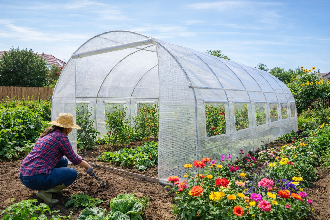 Надійна садова теплиця для вирощування овочів, зелені та квітів. Ідеально підходить для помідорів, огірків, перцю, квасолі, кабачків та інших культур. Створює стабільний мікроклімат і захищає врожай від несприятливих погодних умов. Ідеальне рішення для саду, дачі та присадибної ділянки — створіть оптимальні умови для щедрого врожаю! 🌿