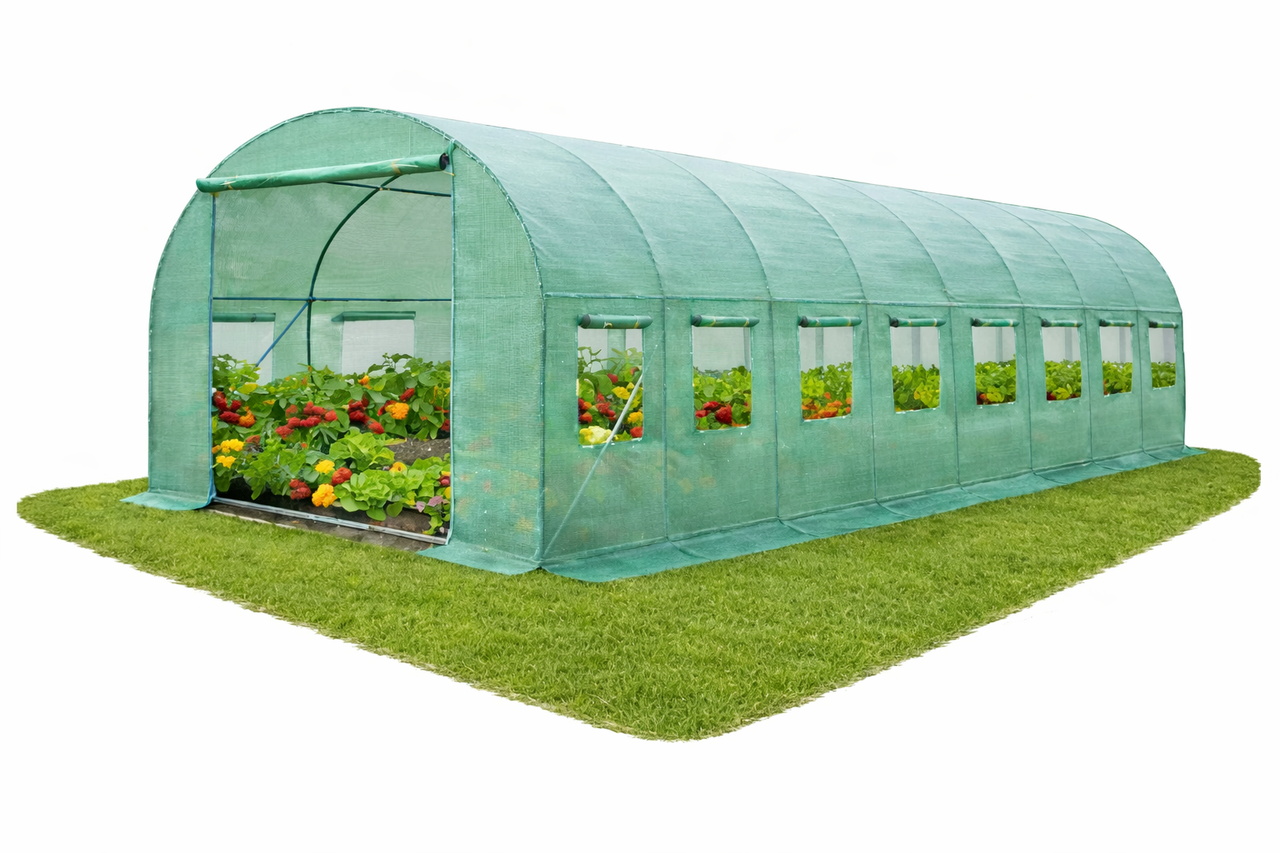 Садова теплиця 24 м² (8 х 3 х 2 м) з вікнами, армована плівка UV-4, труба 25 мм, Польща