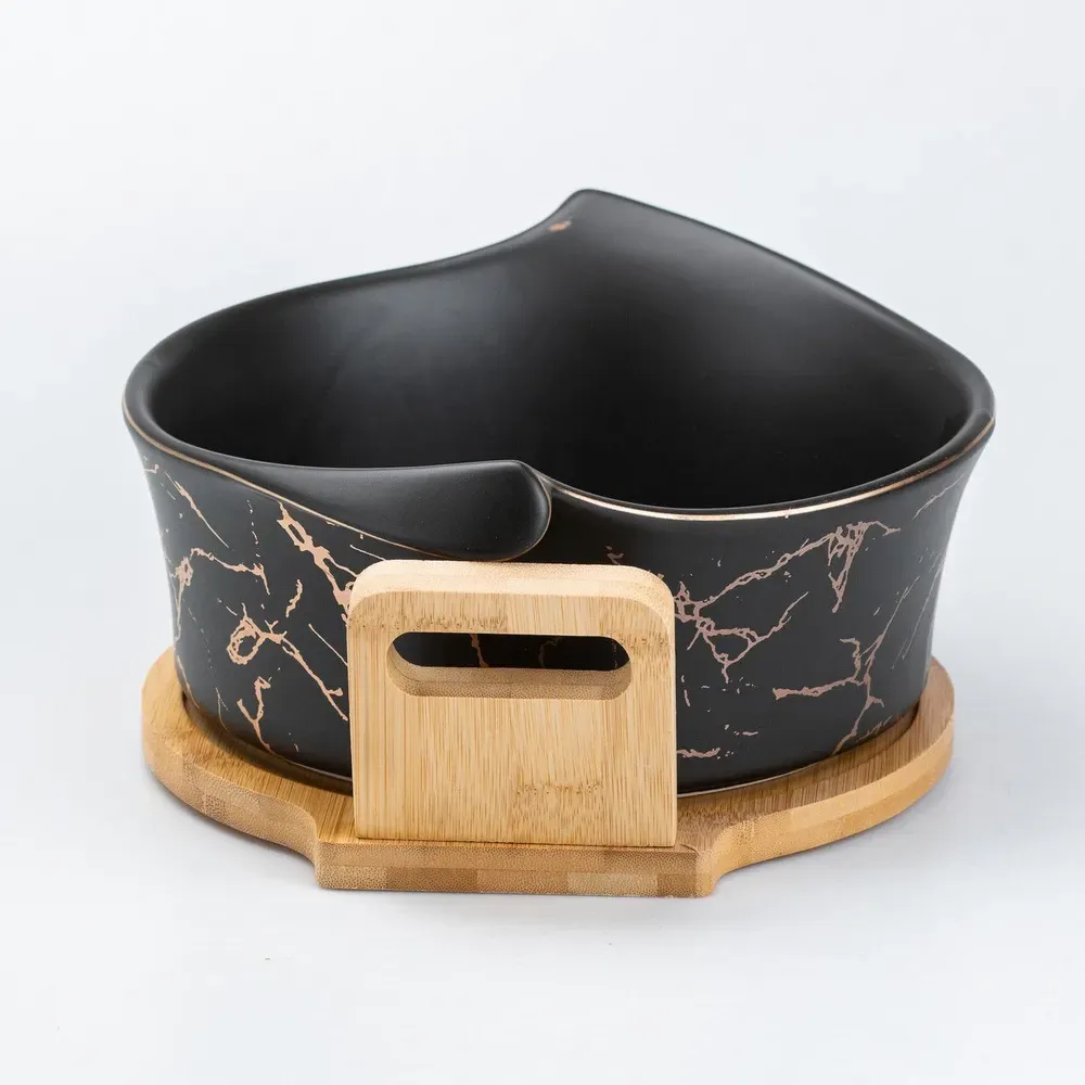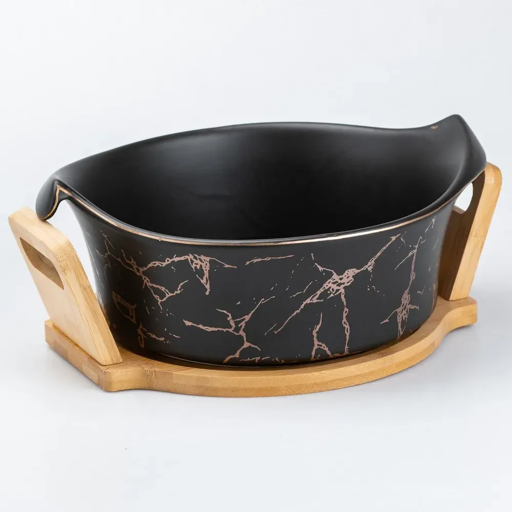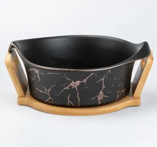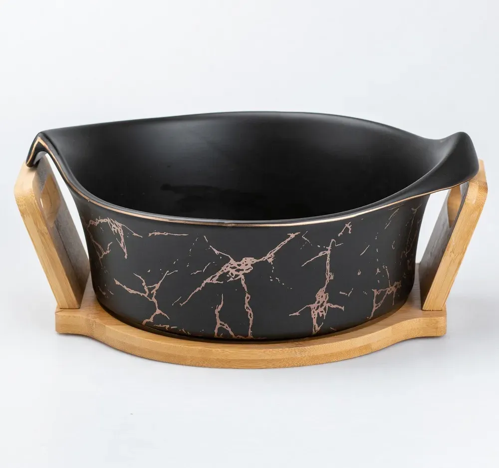Салатниця з підставкою велика миска керамічна 29х22х9.5 см чорна (HP20348B)