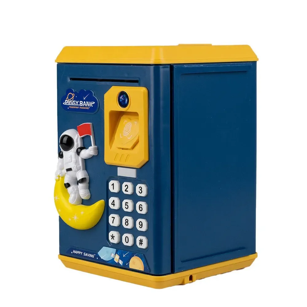 Сейф скарбничка електронна дитяча музична з купюроприймачем кодовим замком і відбитком пальця Синій (668818BL)