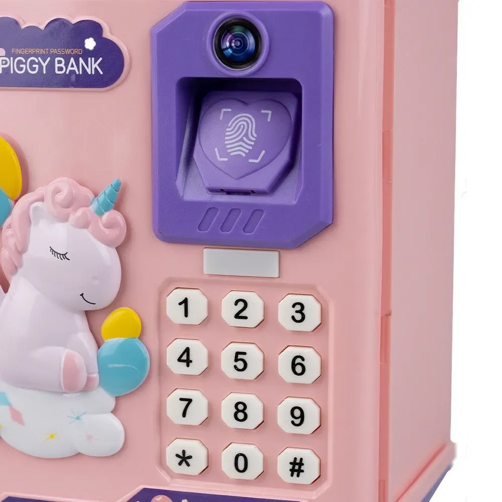 Сейф скарбничка електронна дитяча музична з купюроприймачем кодовим замком та відбитком пальця Єдиноріг (668818P)