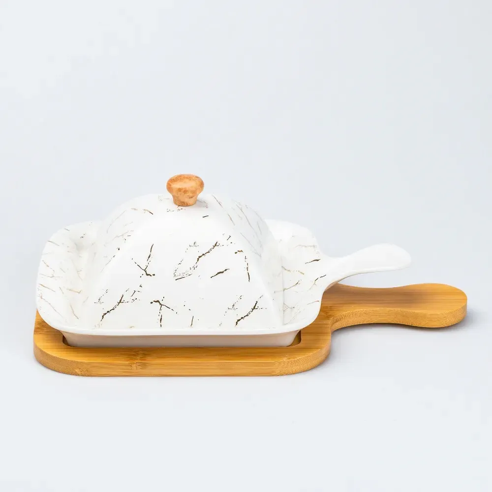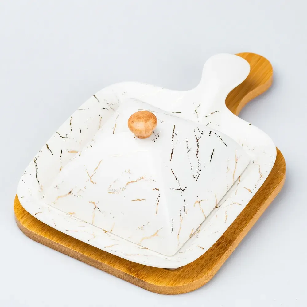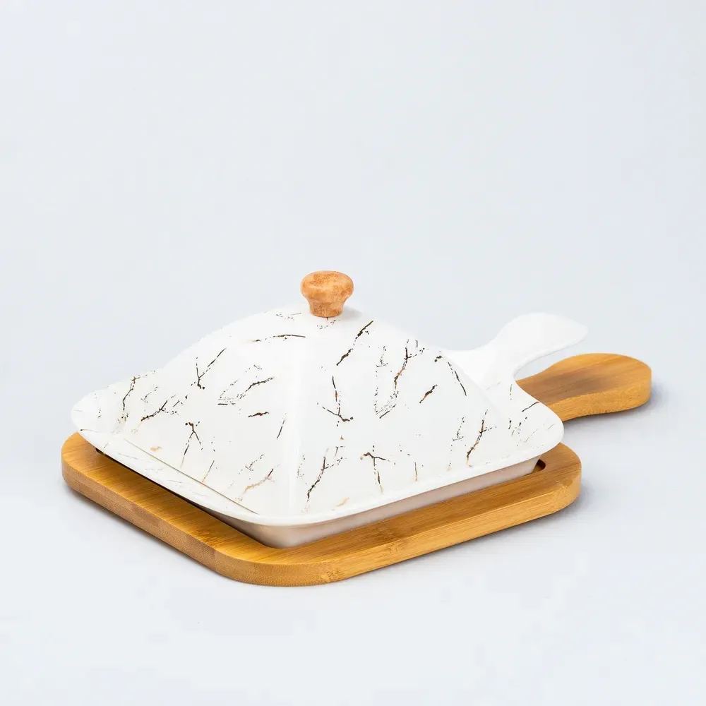 Сервірувальна страва з кришкою на дерев'яній підставці – це не тільки практичний аксесуар, а й стильний елемент декору столу. Також ця страва стане чудовим подарунком для будь-якої господині.