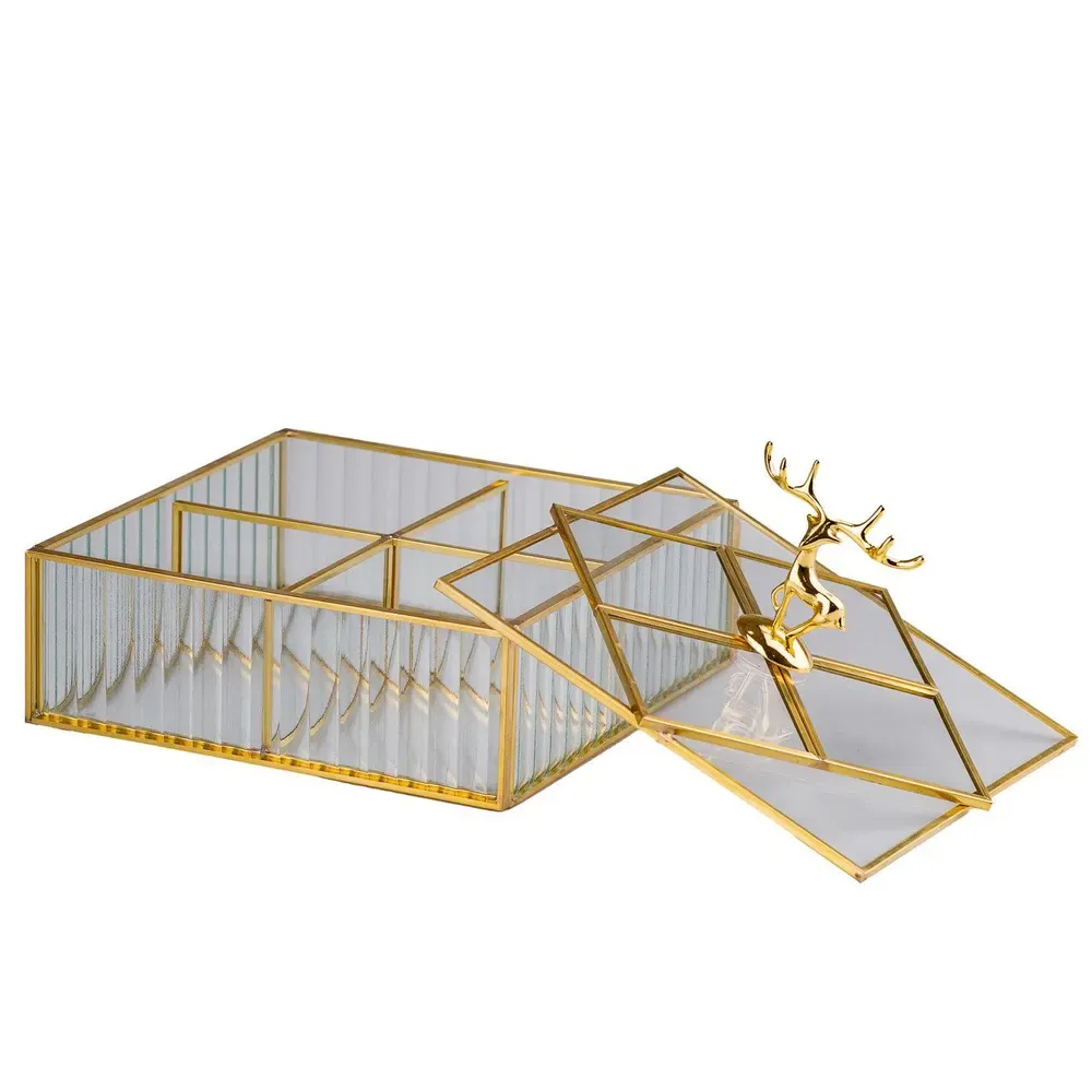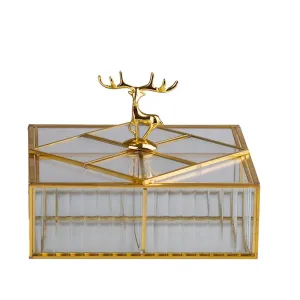 Шкатулка для прикрас Золотий олень квадратна скло з металевим каркасом 22х22 см (HP417)