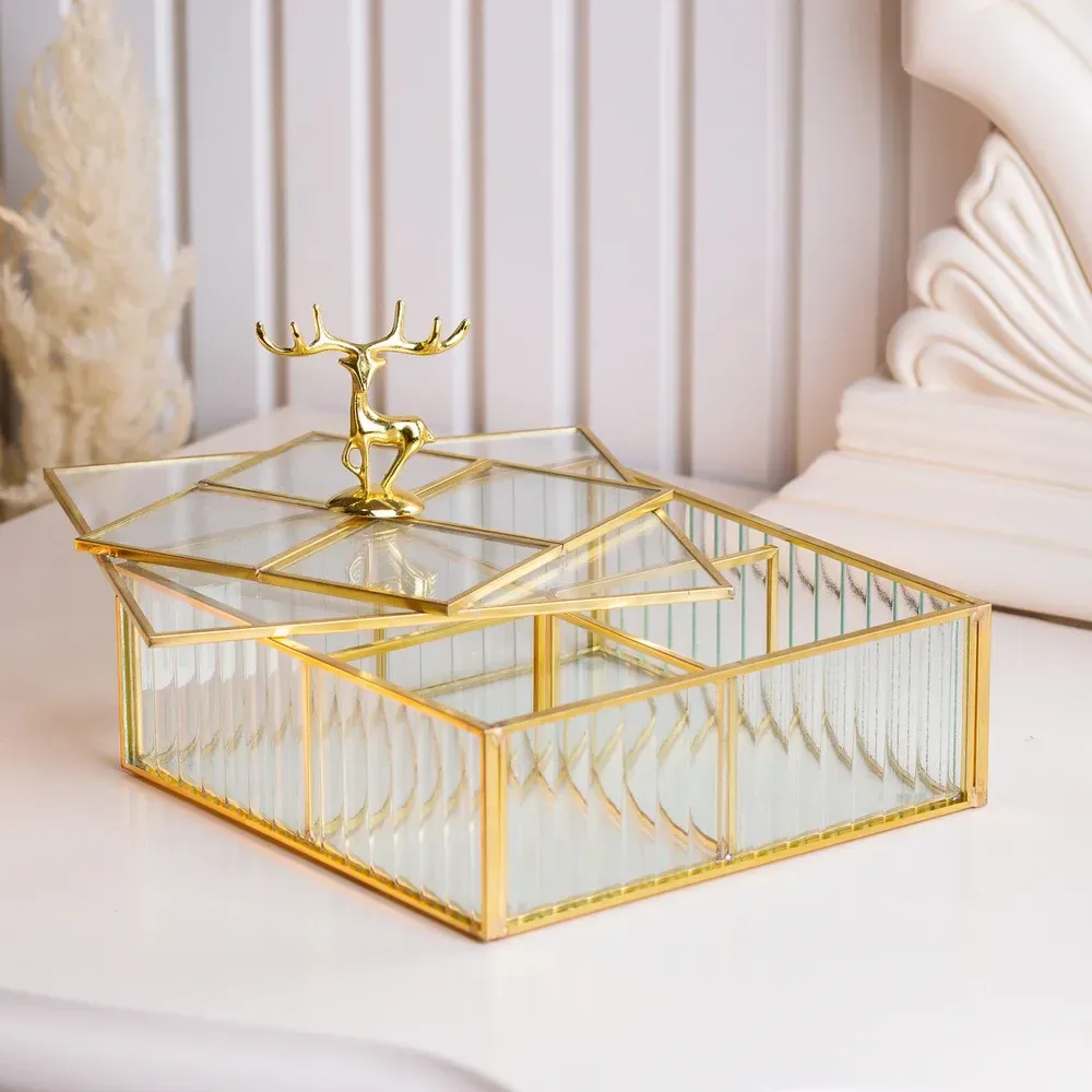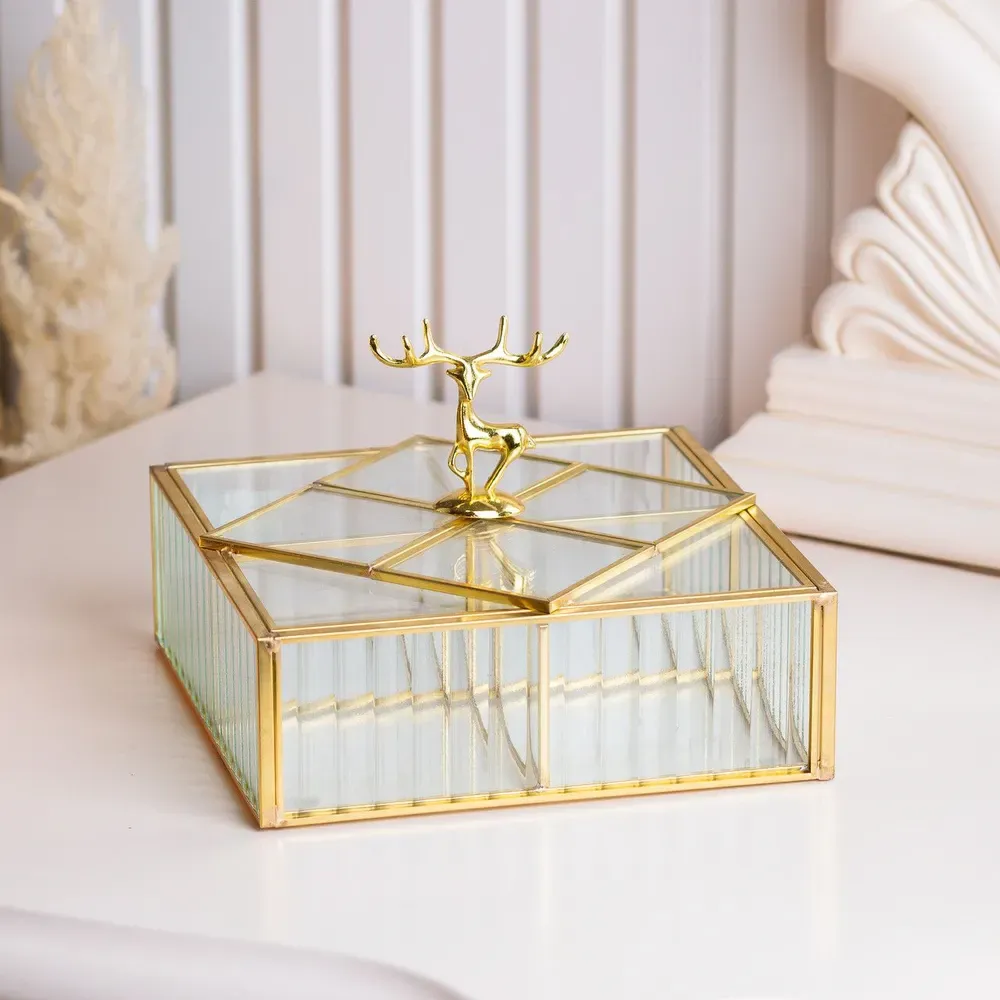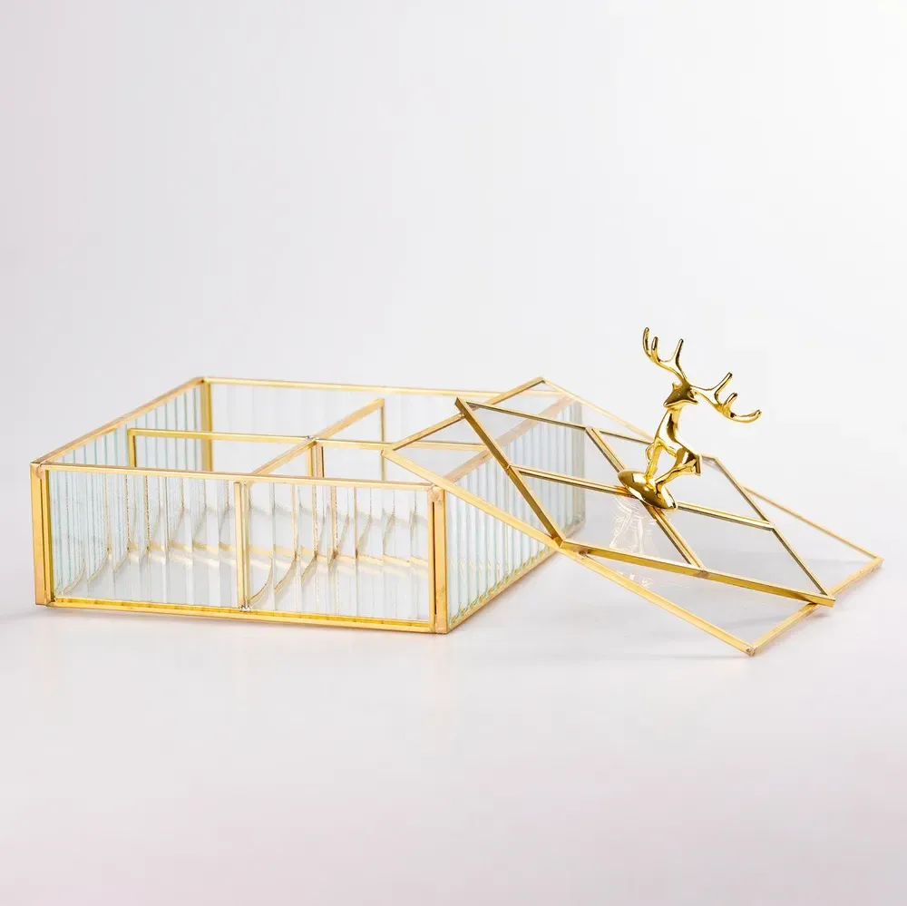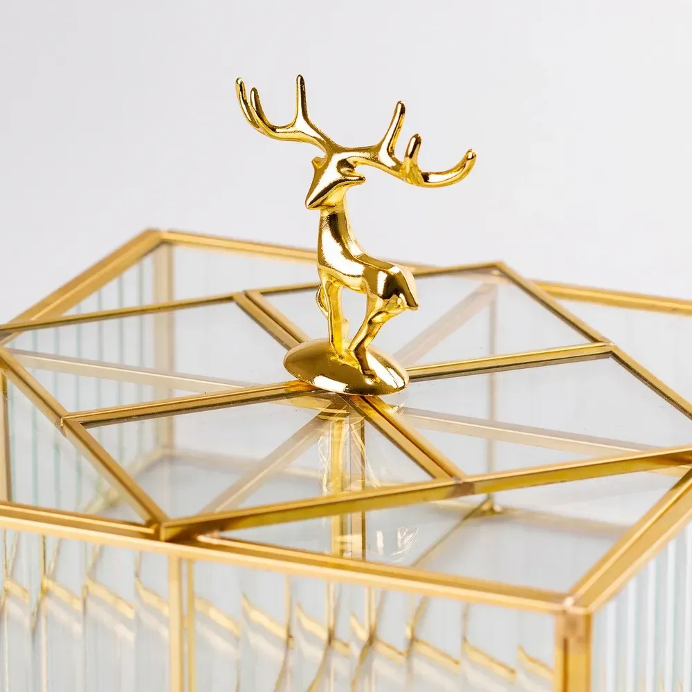 Шкатулка для прикрас Золотий олень прямокутна скло з металевим каркасом 18х18,5 см (HP416)