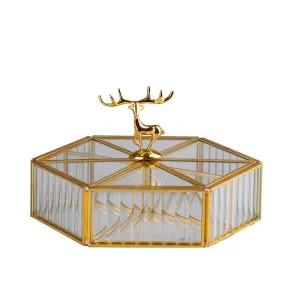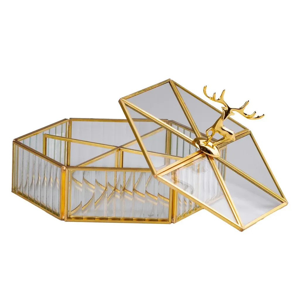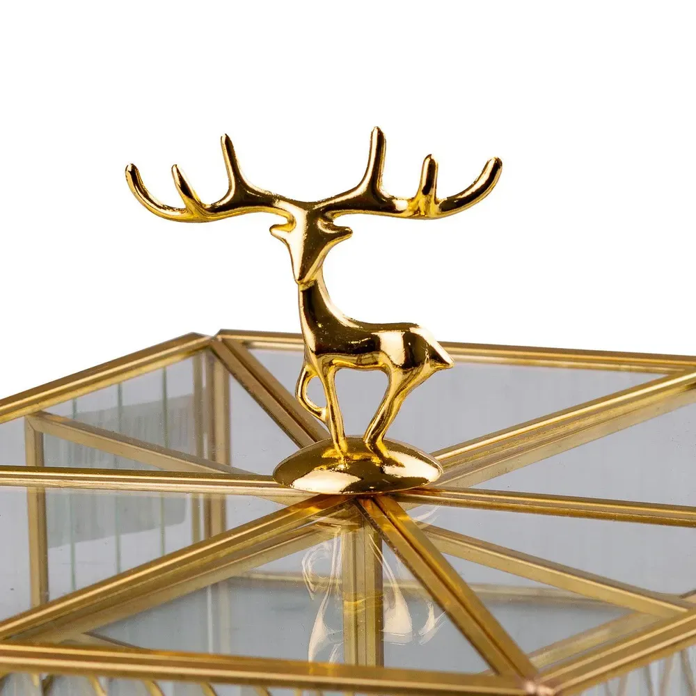 Шкатулка для прикрас Золотий олень скло з металевим каркасом 20х17,5 см Прозорий (HP414)