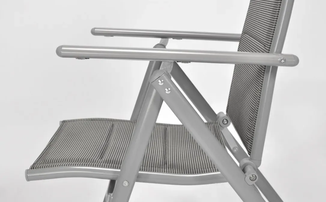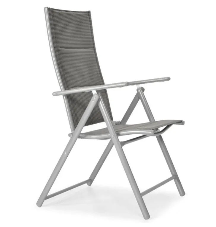 Складний садовий стілець MODENA eDomator алюмінієвий з регулюванням спинки, Срібний (Польща)