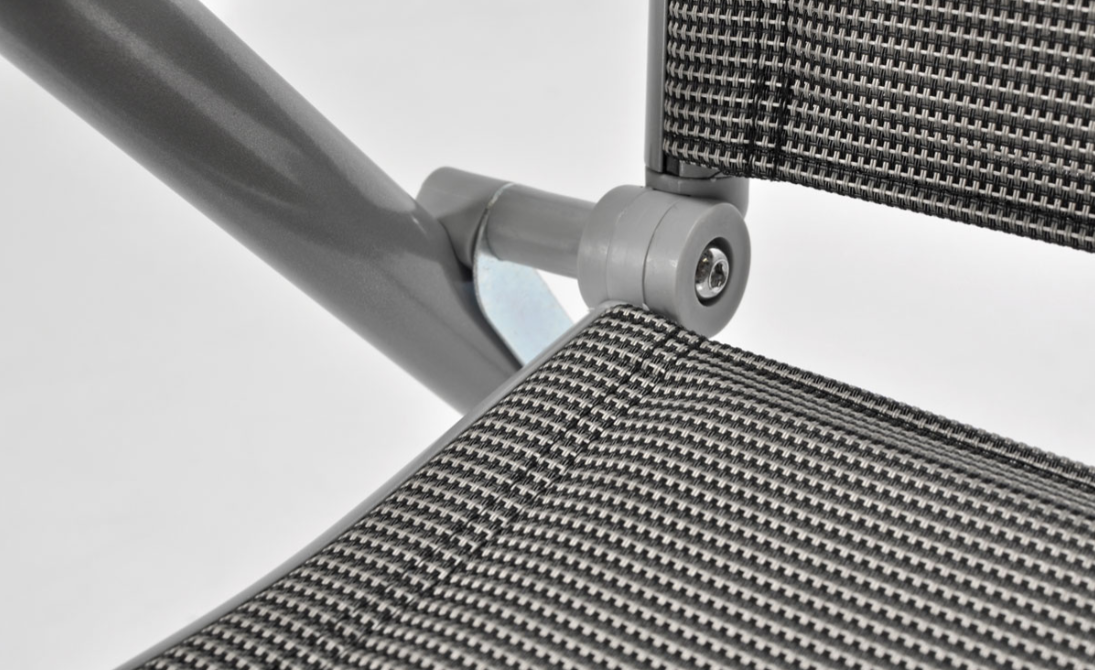 Стильний та практичний садовий стілець MODENA — ідеальне рішення для відпочинку на терасі, балконі, у саду чи на дачі. Завдяки легкому, але міцному алюмінієвому каркасу він поєднує мобільність, стійкість і довговічність. Сидіння та спинка виготовлені з якісного зносостійкого матеріалу textilene, який добре пропускає повітря, швидко висихає та не втрачає вигляд під впливом погодних умов. Стілець легко складається, займає мінімум місця при зберіганні та оснащений підлокітниками й регульованою спинкою з 8 положеннями нахилу, що дозволяє обрати максимально комфортну позицію для відпочинку.