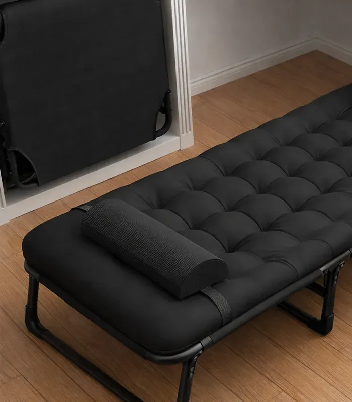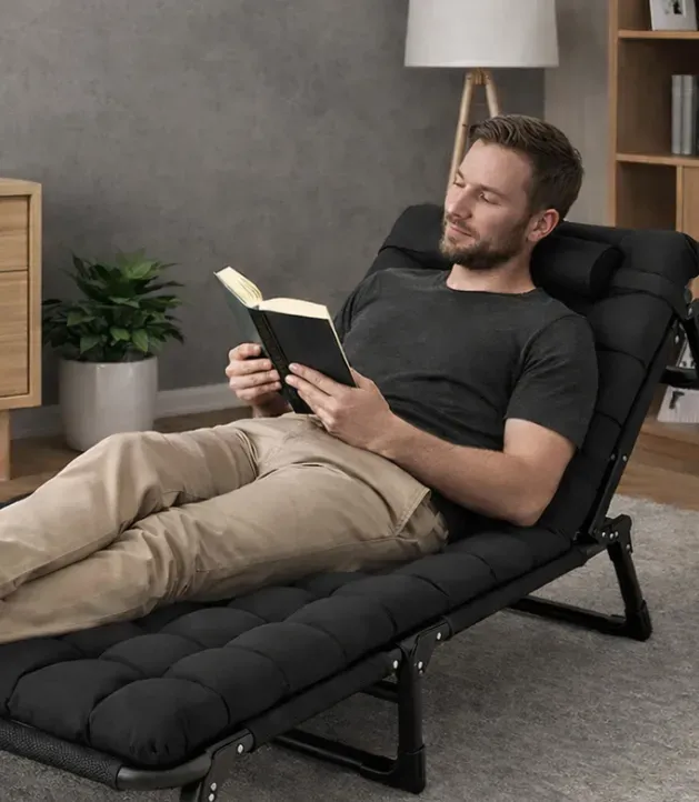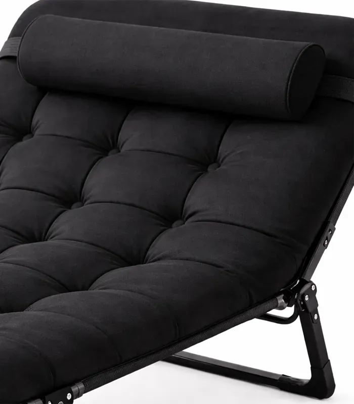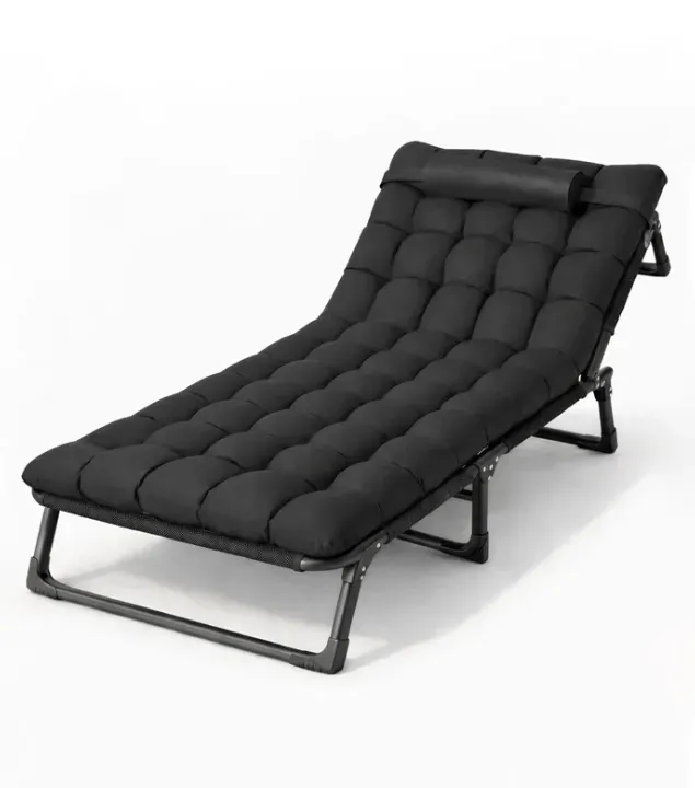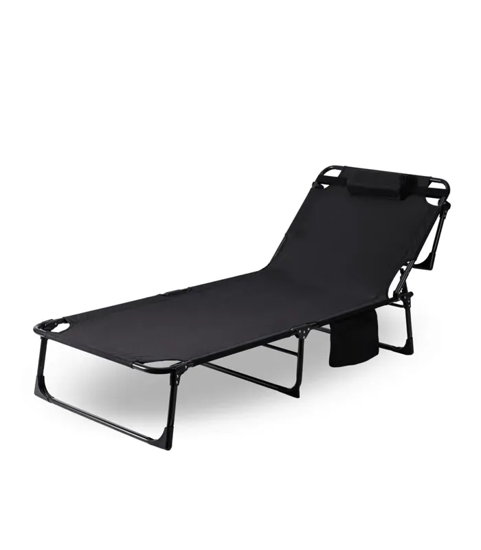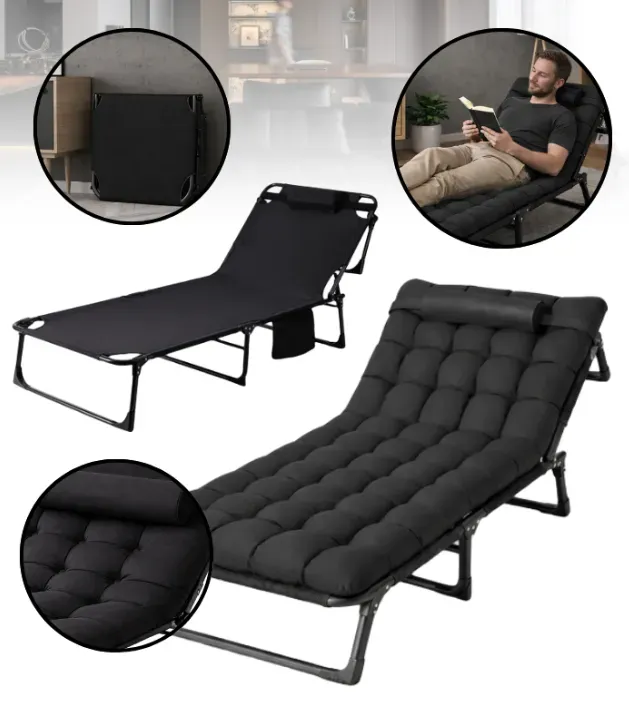 Складний туристичний лежак з матрацом та підголівником (178 × 56 × 30 см), регульований садовий шезлонг (Чорний)