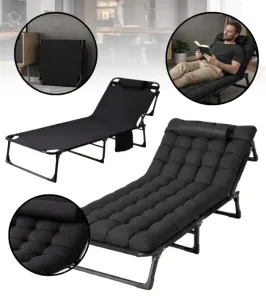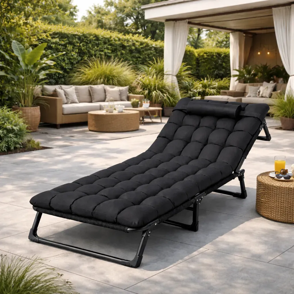 Складний туристичний лежак з матрацом та підголівником (178 × 56 × 30 см), регульований садовий шезлонг (Чорний) (G1281)