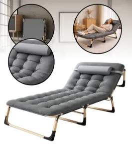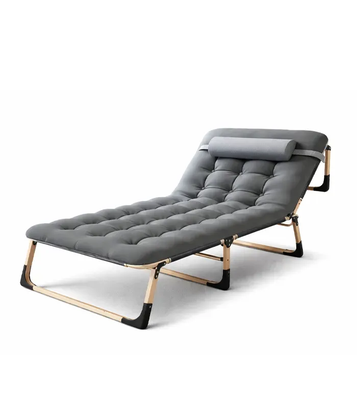 Складний туристичний лежак з матрацом та підголівником (178 × 56 × 30 см), регульований садовий шезлонг (Сірий) (G1280)