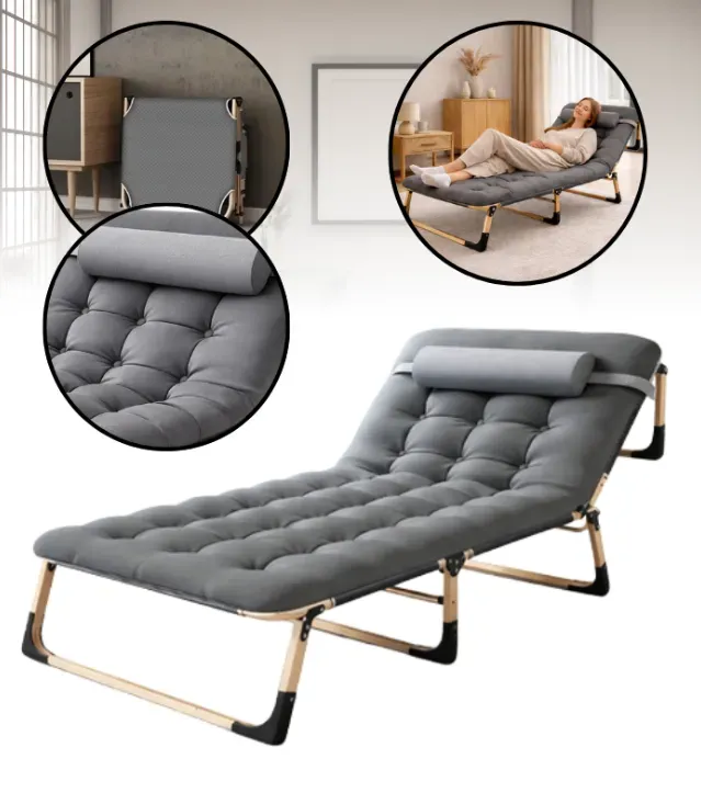 Складний туристичний лежак з матрацом та підголівником (178 × 56 × 30 см), регульований садовий шезлонг (Сірий)