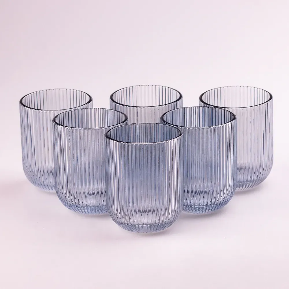 Склянка для напоїв фігурна прозора ребриста з товстого скла набір 6 шт Блакитний (HP7112BL)