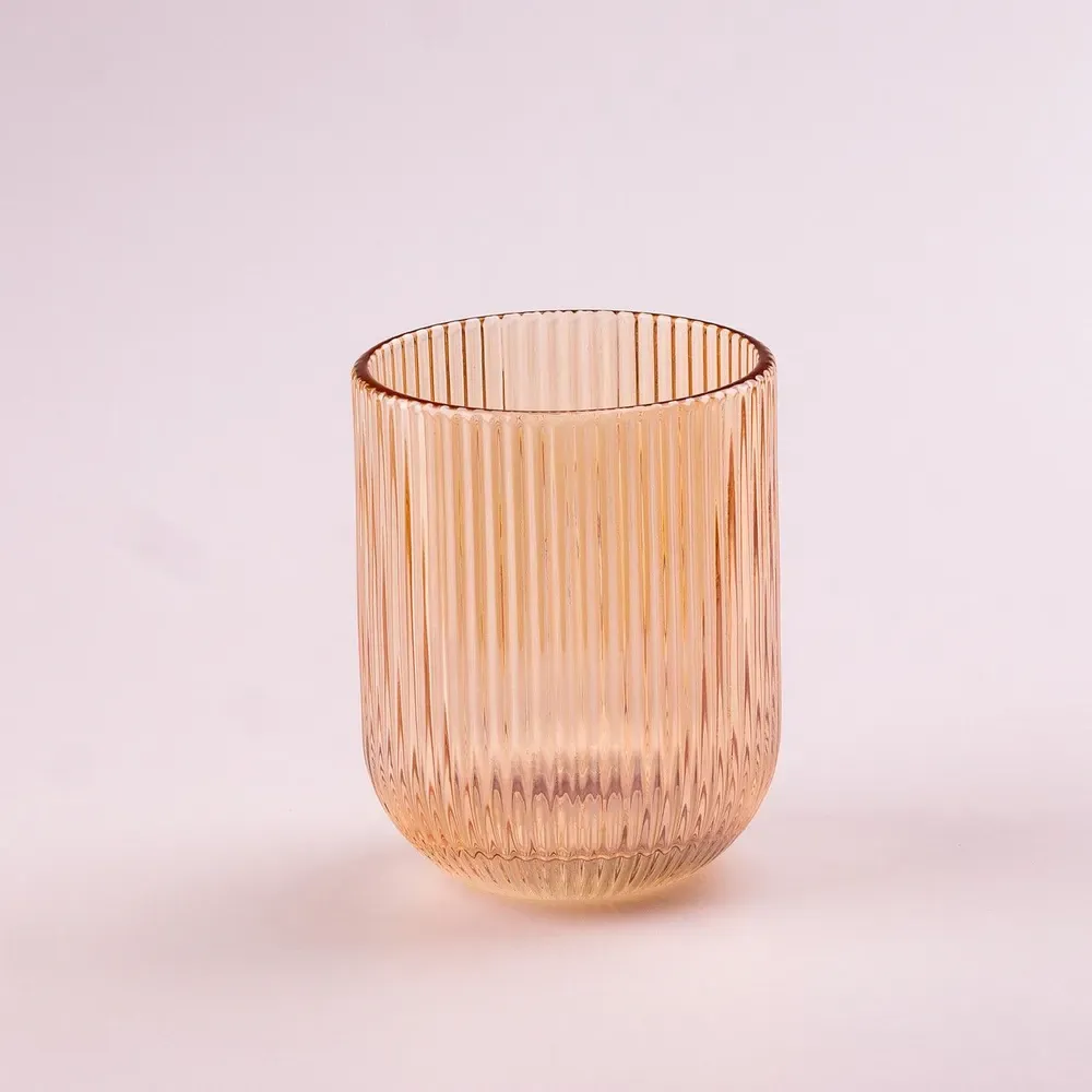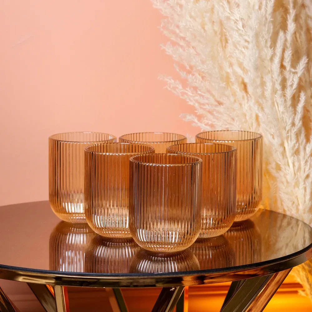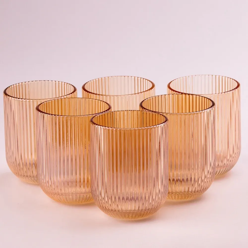 Склянка для напоїв фігурна прозора ребриста з товстого скла набір 6 шт Бурштиновий (HP7112A)