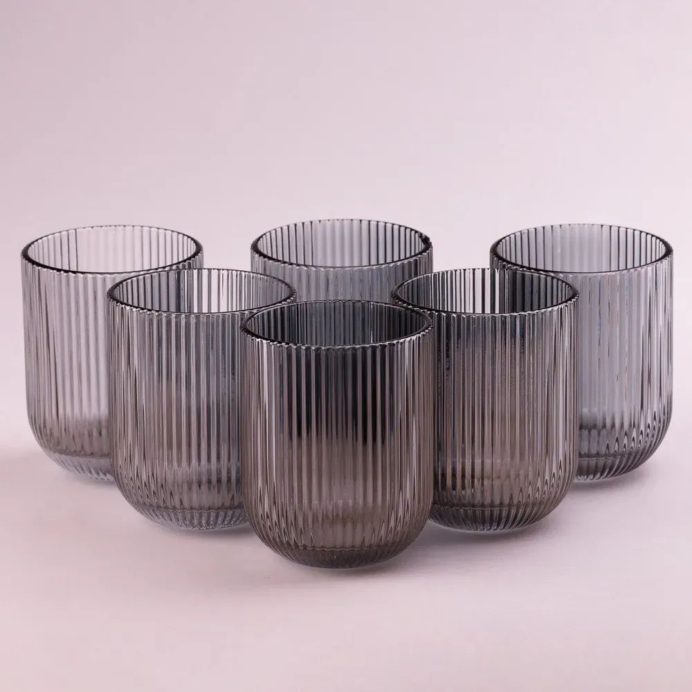 Склянка для напоїв фігурна прозора ребриста з товстого скла набір 6 шт Сірий (HP7112G)