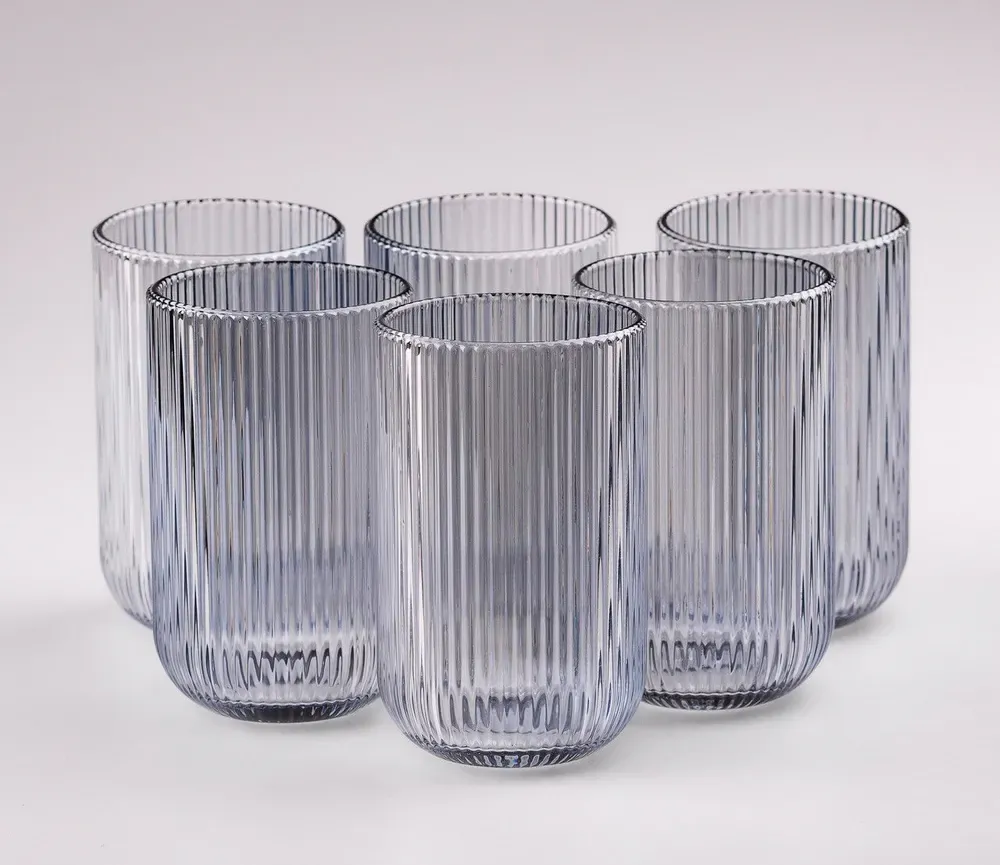Склянка для напоїв висока фігурна прозора ребриста з товстого скла набір 6 шт Блакитний (HP7113BL)