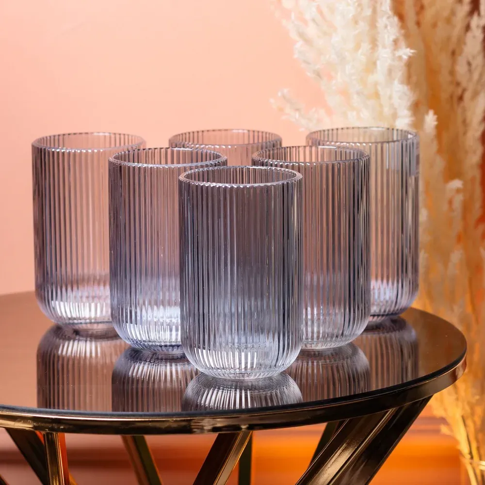Склянки мають середню висоту та об'єм, що робить їх універсальними для подачі різних напоїв, таких як вода, сік, чай, кава чи алкогольні напої. Ребриста поверхня склянок сприяє кращому охолодженню напою та розкриттю його аромату. Виготовлені з товстого скла, що робить їх стійкими та довговічними, також безпечні для миття у посудомийній машині.