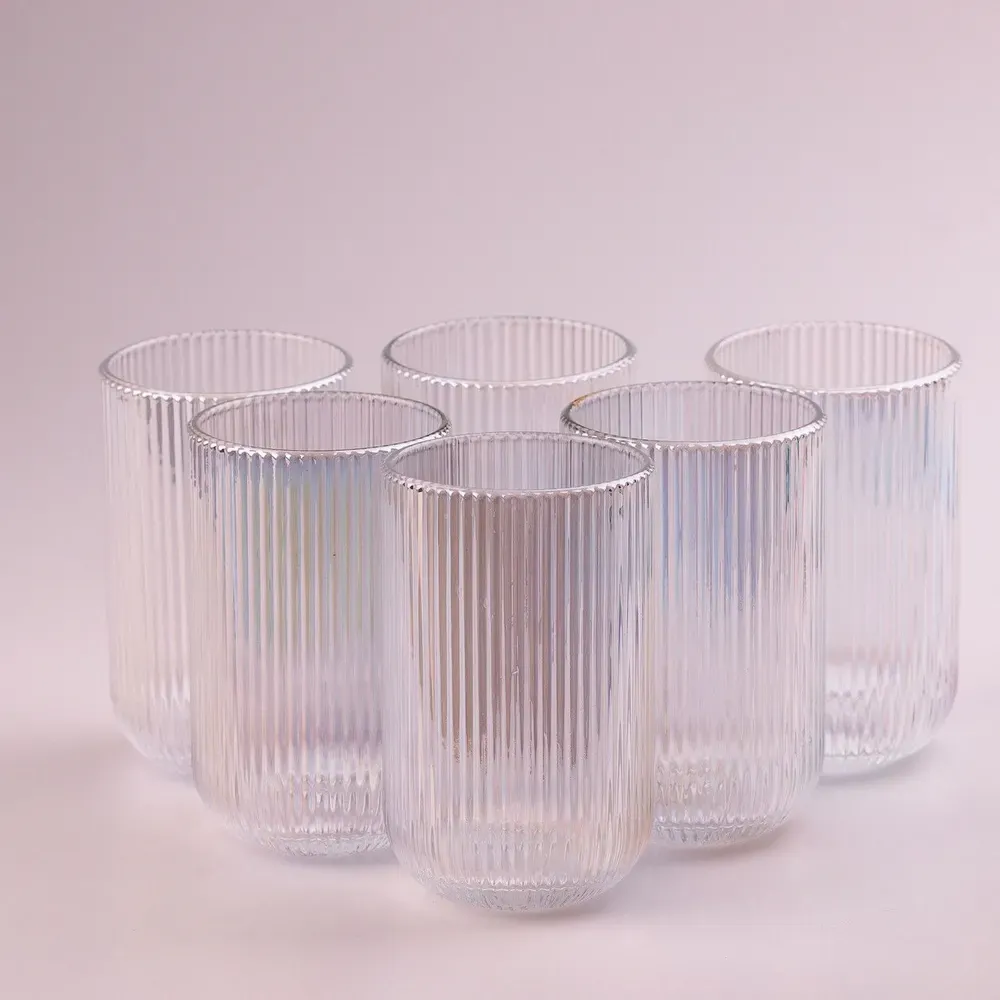 Склянка для напоїв висока фігурна прозора ребриста з товстого скла набір 6 шт Rainbow (HP7113RB)