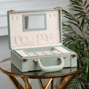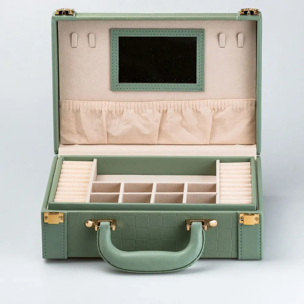 Скринька органайзер для прикрас біжутерії прямокутна 27 х 18.5 х 9 см з дзеркальцем валіза з екошкіри Оливкова (HP47615T)