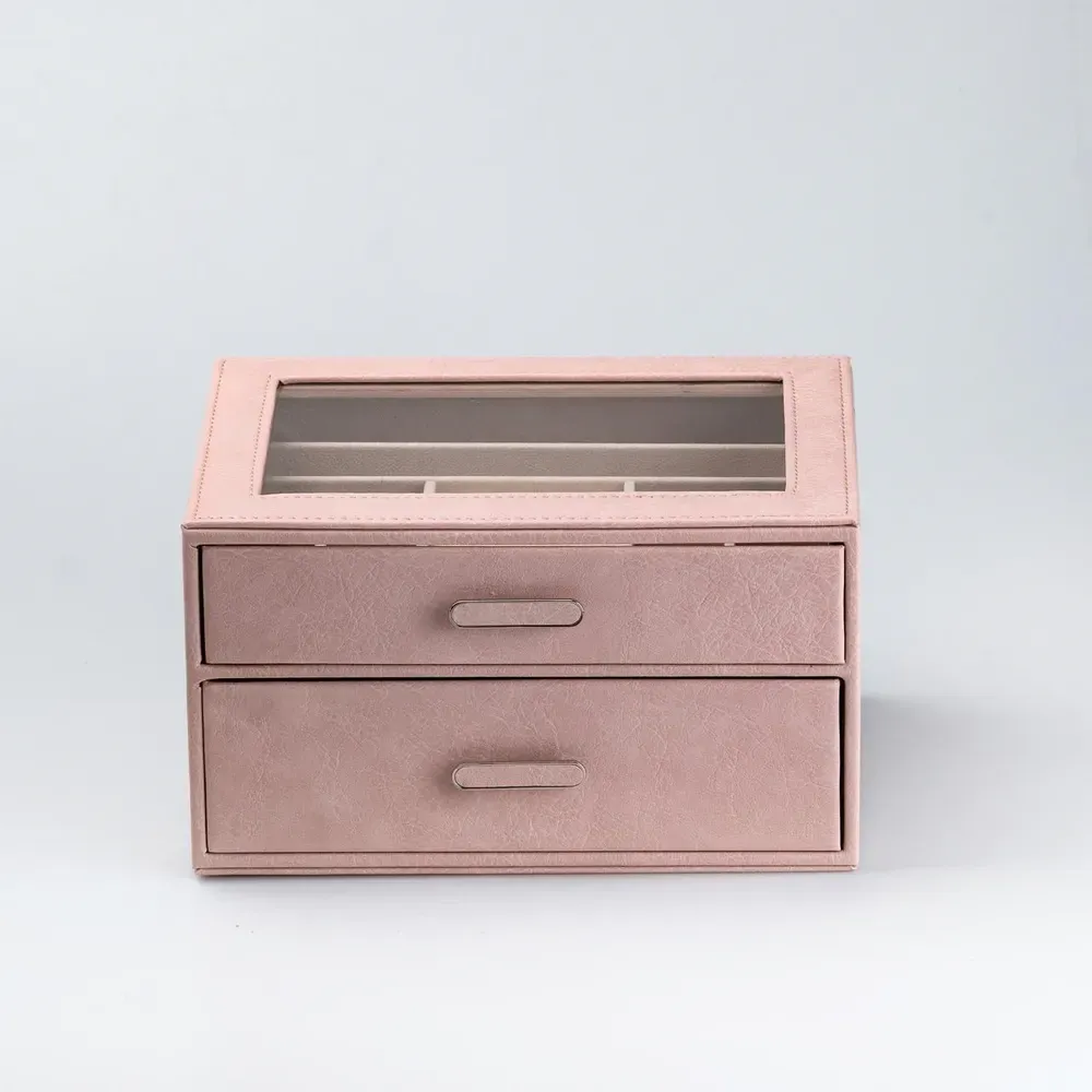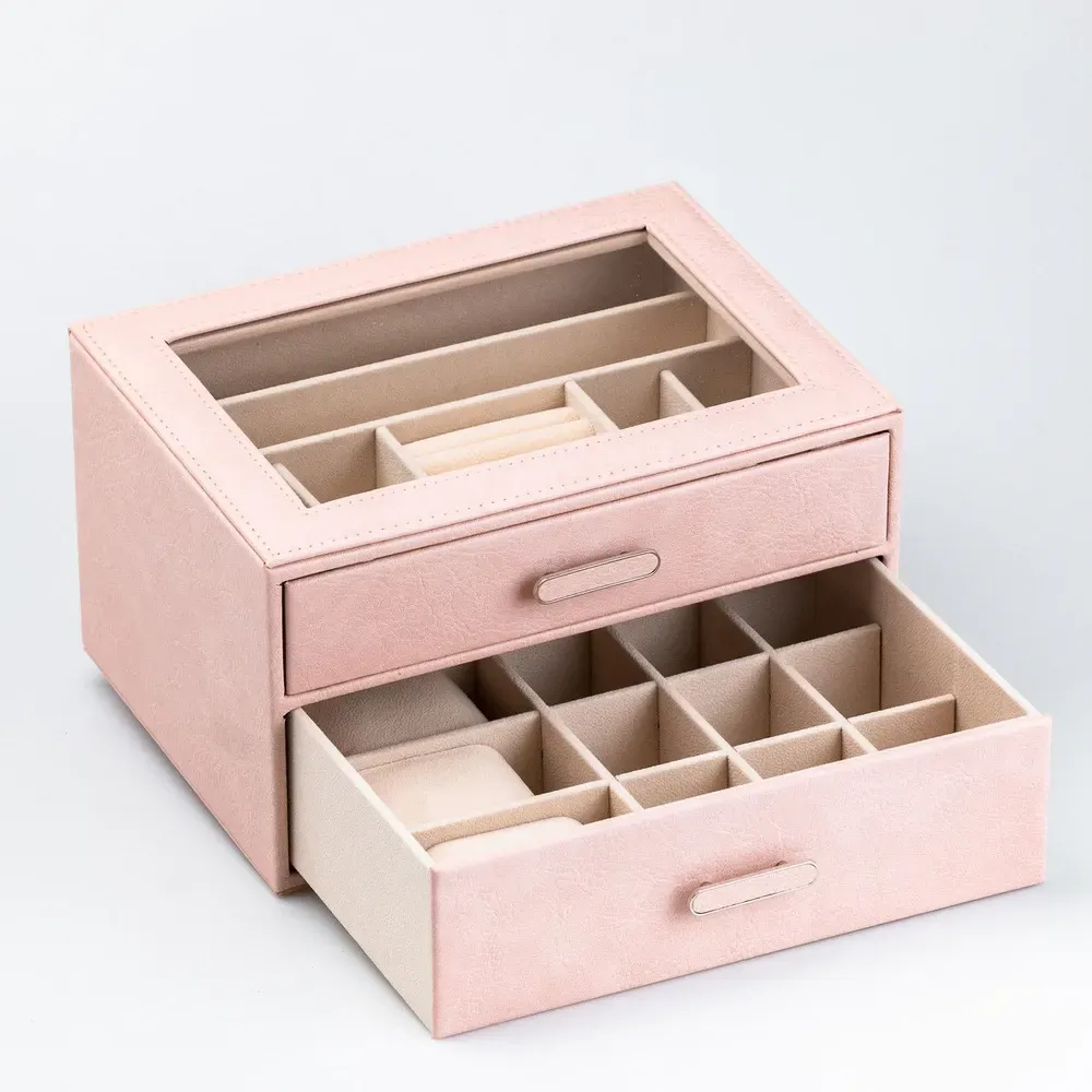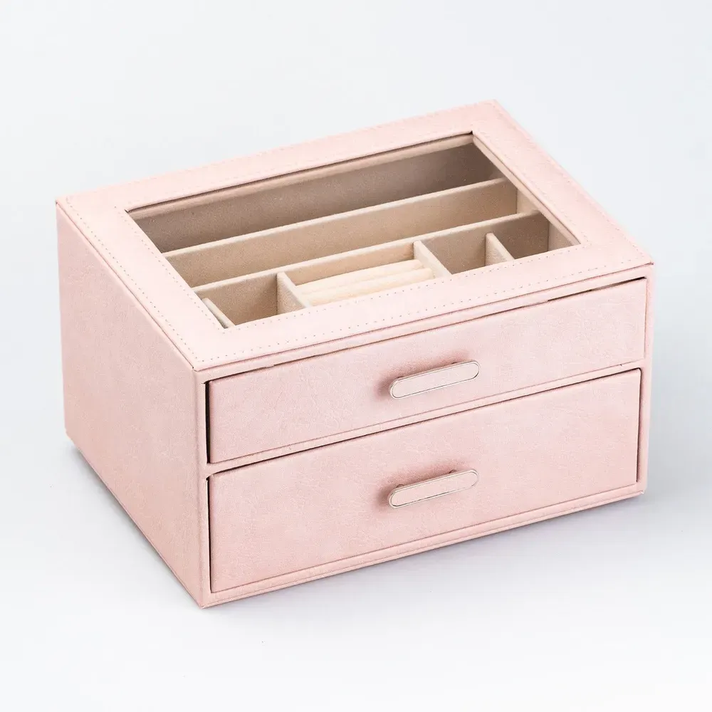 Скринька органайзер для прикрас біжутерії прямокутна на два яруси з екошкіри 24.5 х 17.5 х 14 см Пудрова (HP47614P)