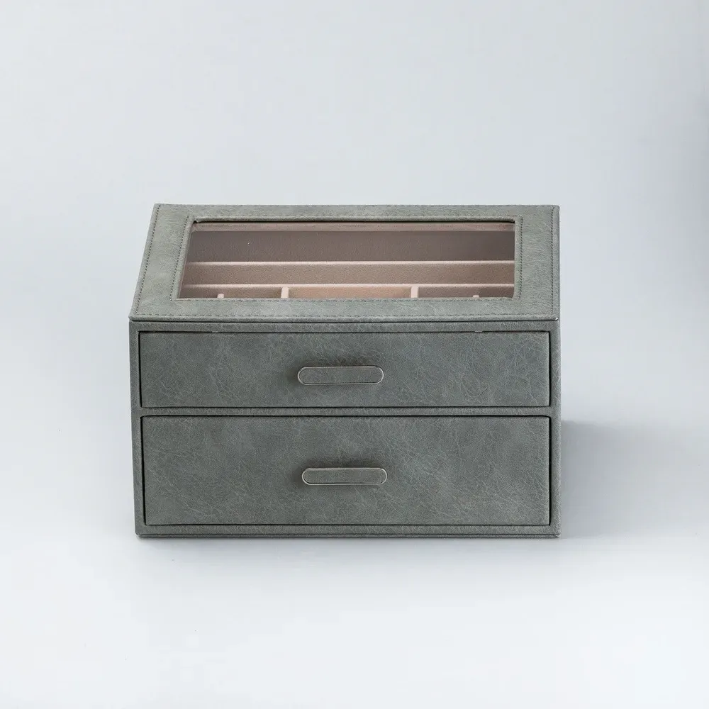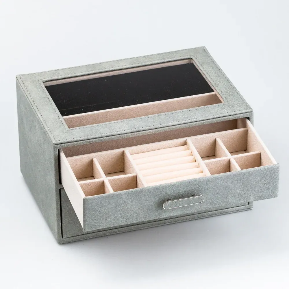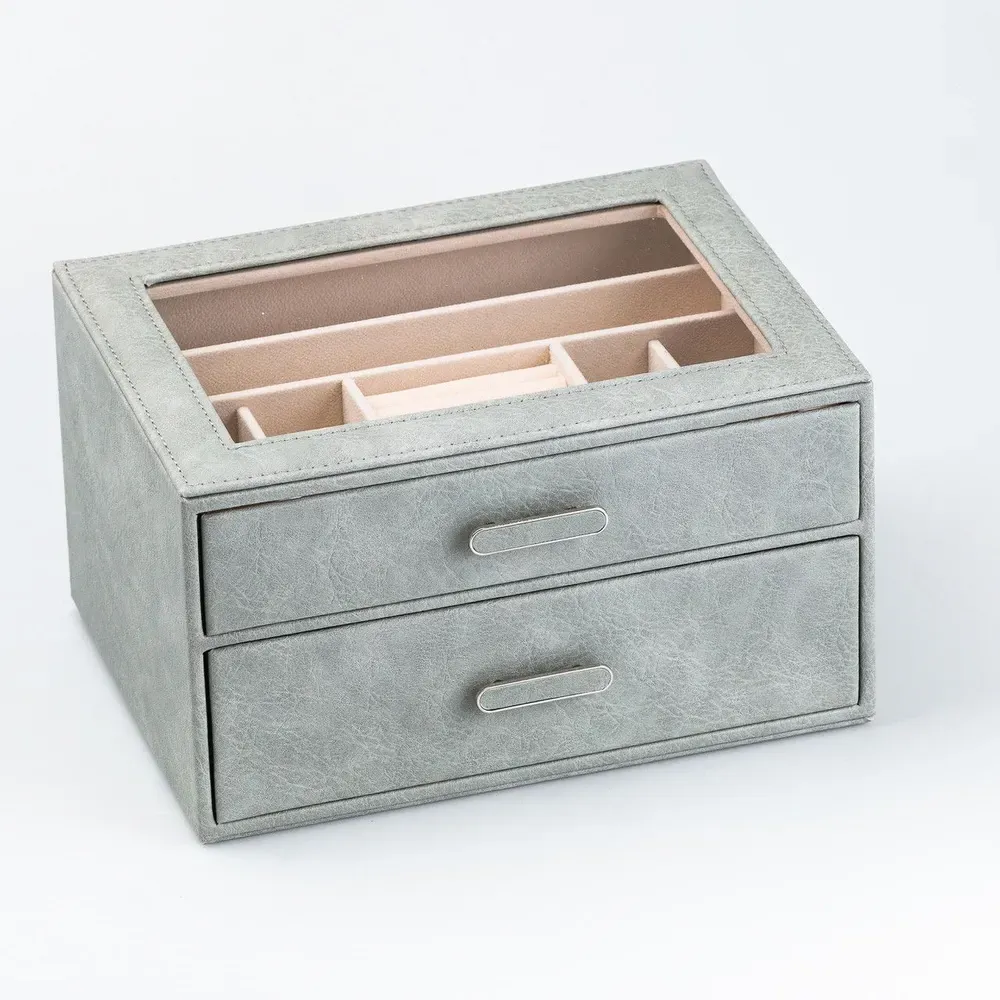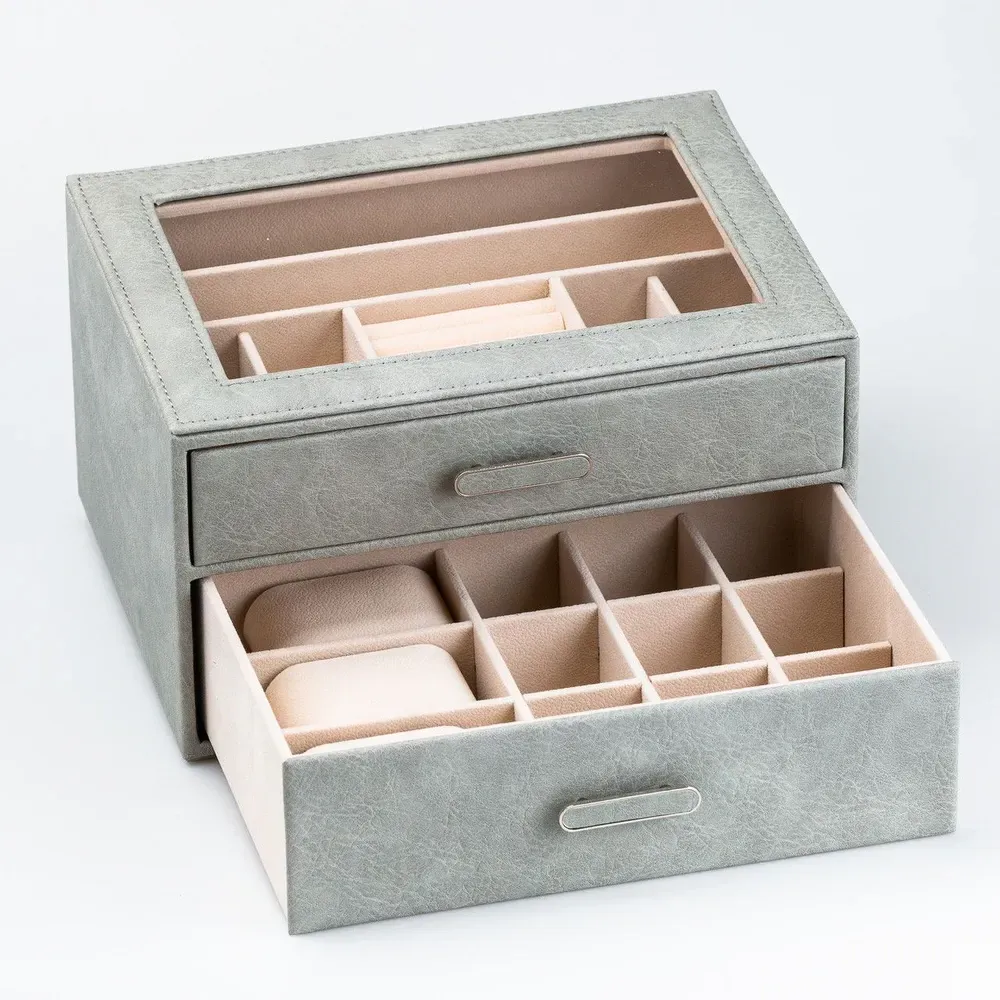 Скринька органайзер для прикрас біжутерії прямокутна на два яруси з екошкіри 24.5 х 17.5 х 14 см Сіра (HP47614S)