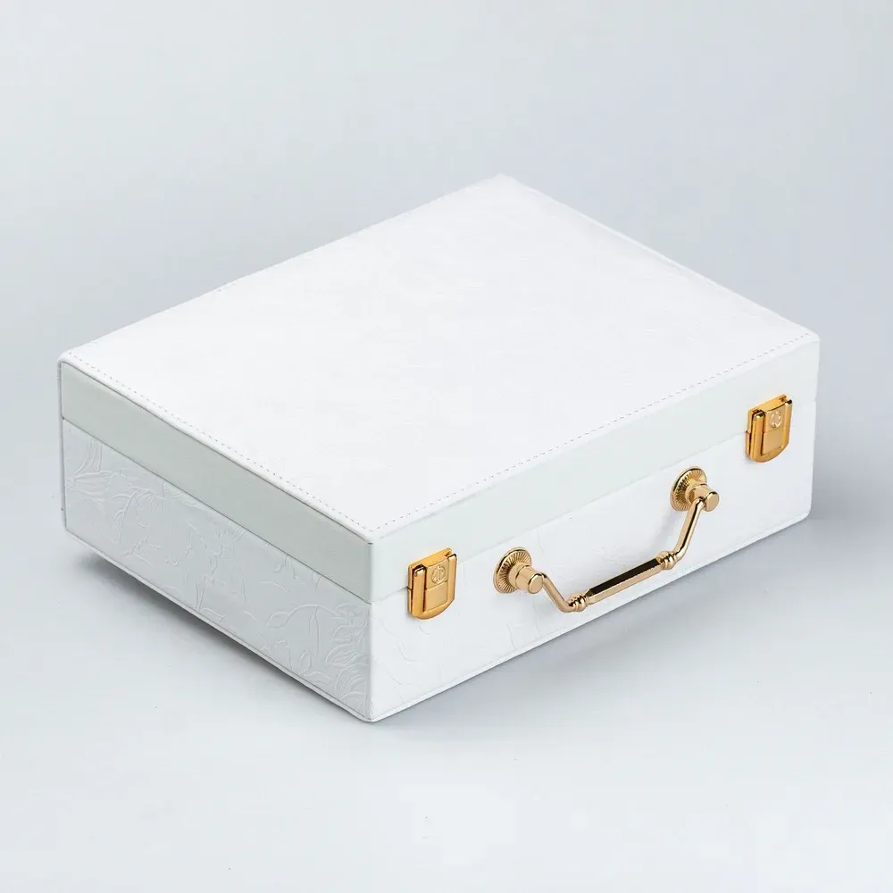 Скринька органайзер для прикрас біжутерії прямокутна з дзеркальцем валіза з екошкіри Біла (HP47613W)