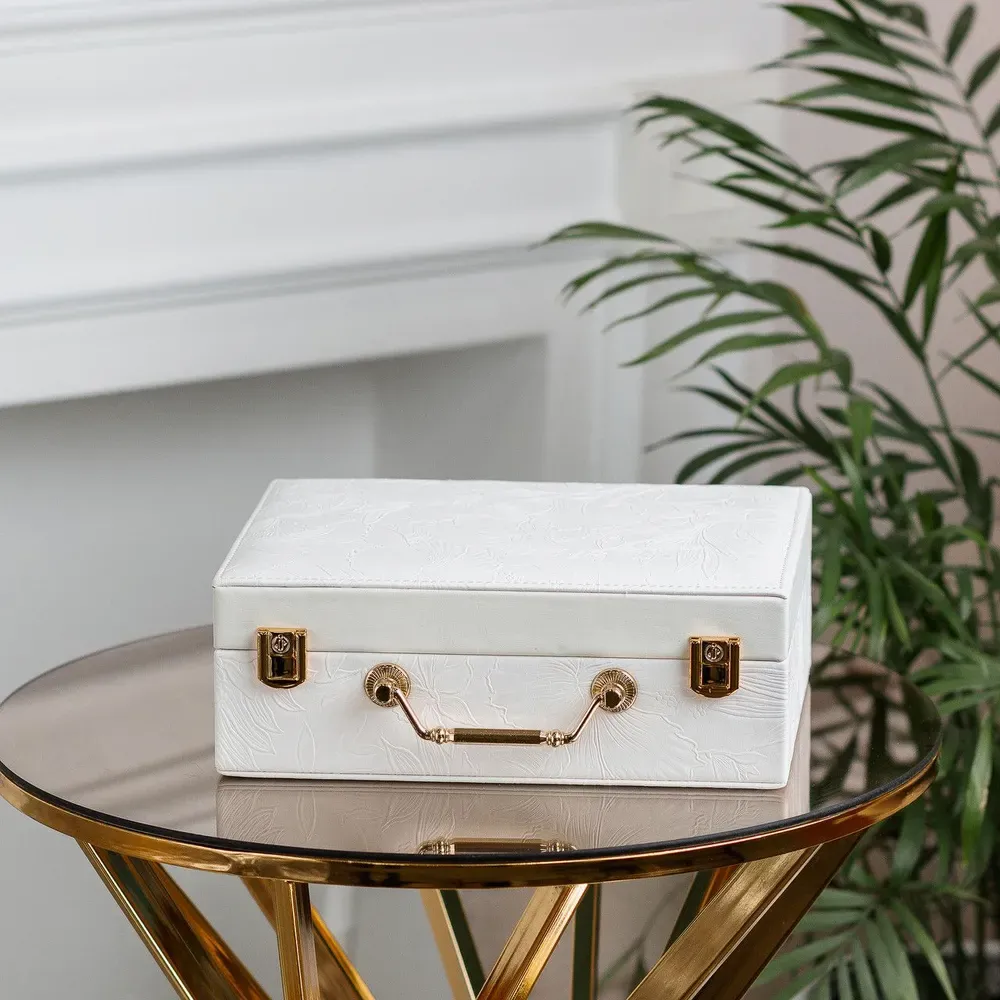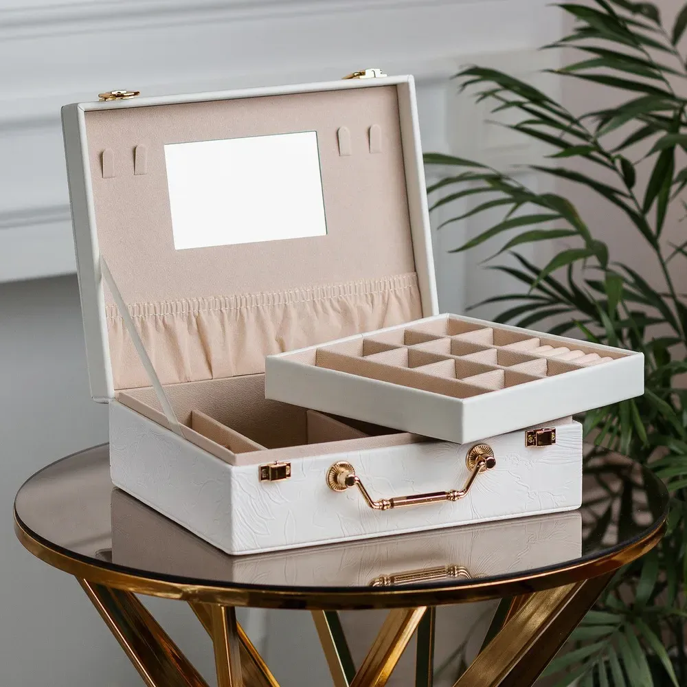 - Організація та порядок: Окремі відсіки та осередки скриньки дозволяють розподілити прикраси за категоріями, наприклад, кільця, сережки, браслети, намиста тощо.