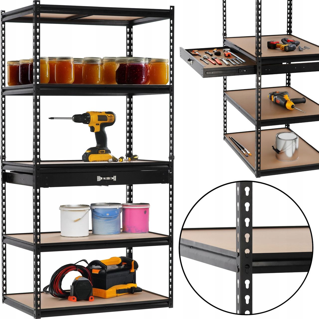 Стелаж металевий з шухлядою (180 × 90 × 60 см) 5 регульованих полиць, навантаження на полицю - 175 кг, Чорний (GWI2127)
