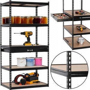 Міцна конструкція зі сталі з оцинкованим покриттям забезпечує високу стабільність і стійкість до корозії, що гарантує довгий термін служби стелажа. Регульовані полиці з МДФ дозволяють легко налаштувати висоту під різні предмети, а практична шухляда забезпечує зручне зберігання дрібних інструментів та аксесуарів.
