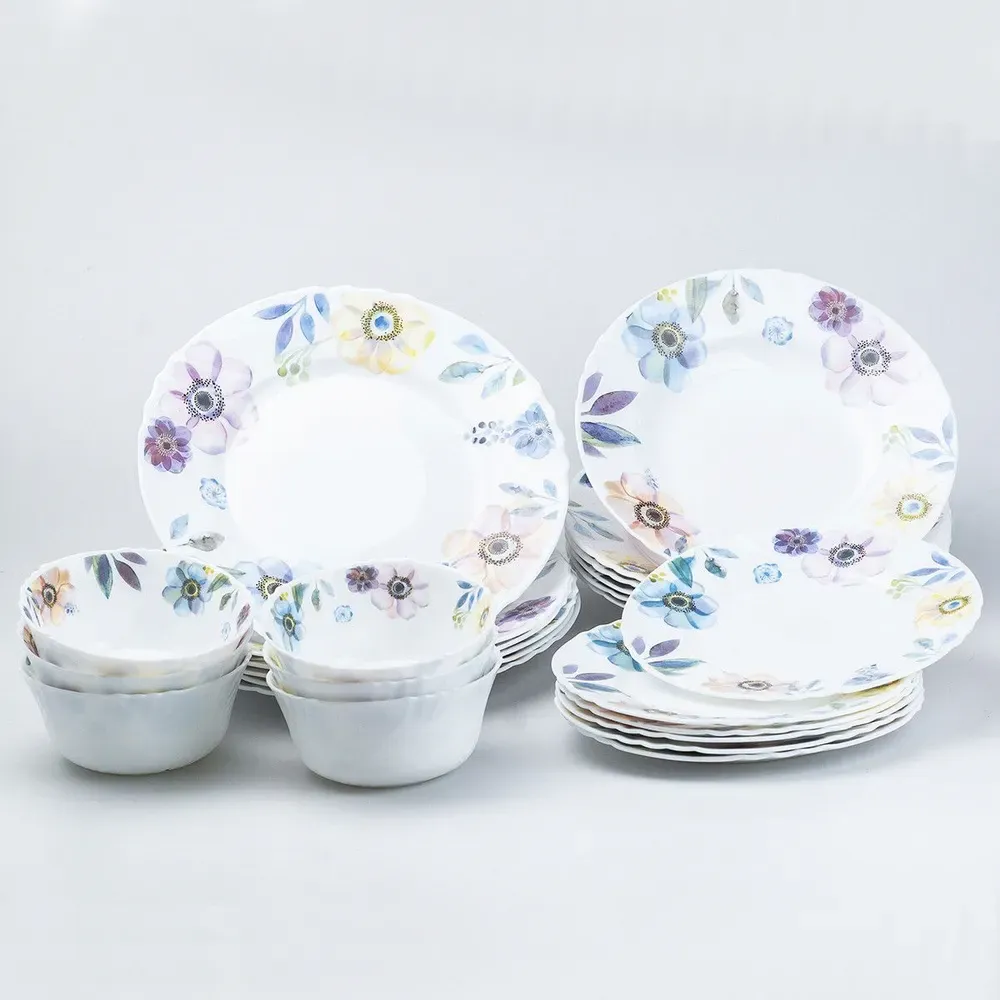 Столовий сервіз тарілок 24 штуки керамічних на 6 персон білий квіти (HP23408)