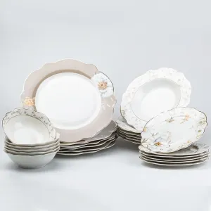 Столовий сервіз тарілок 24 штуки керамічних на 6 персон Білий з квітами (HP23411)