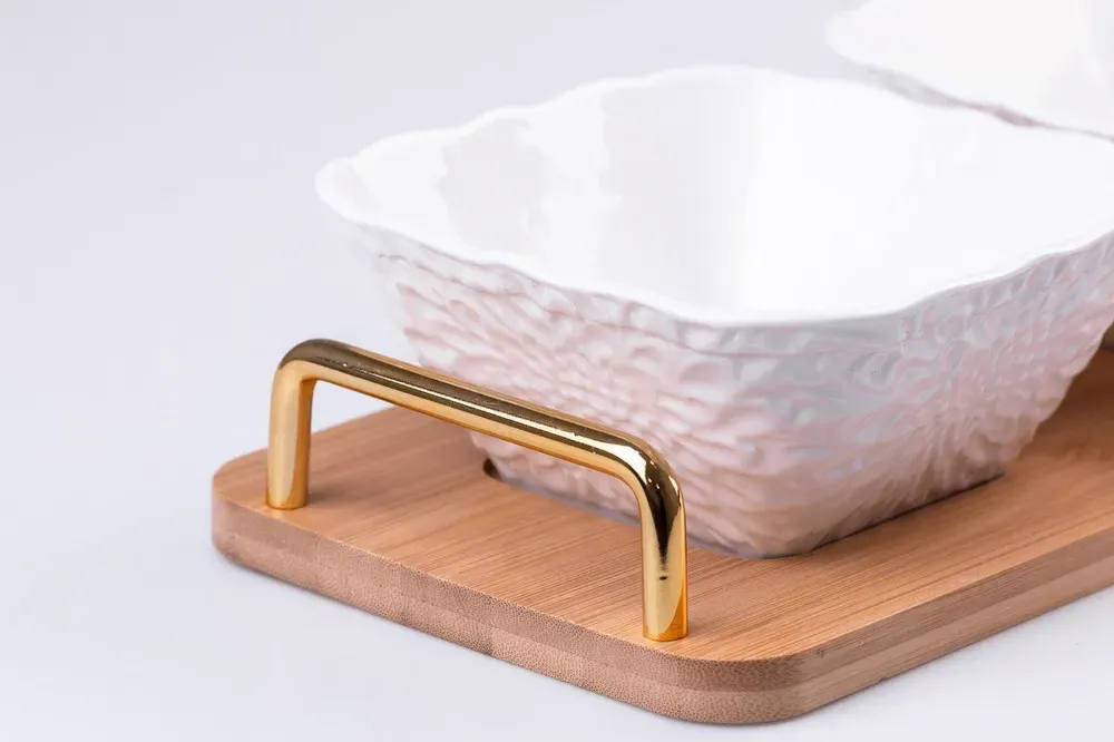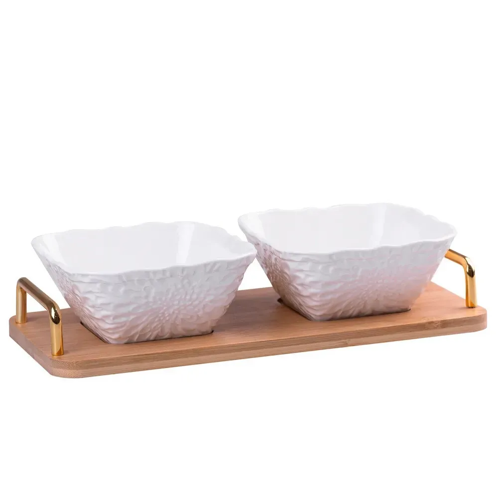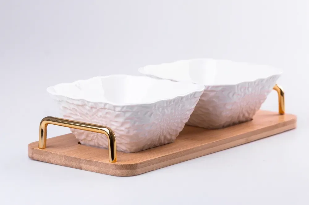 Страви сервірувальні порцелянові на дерев'яній підставці 2 шт. по 500 мл 14.5×32см (HP479)