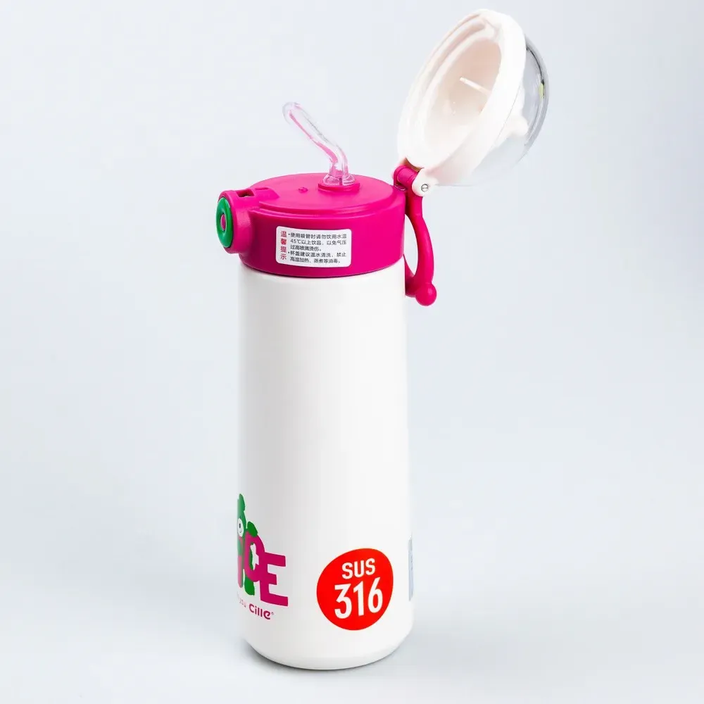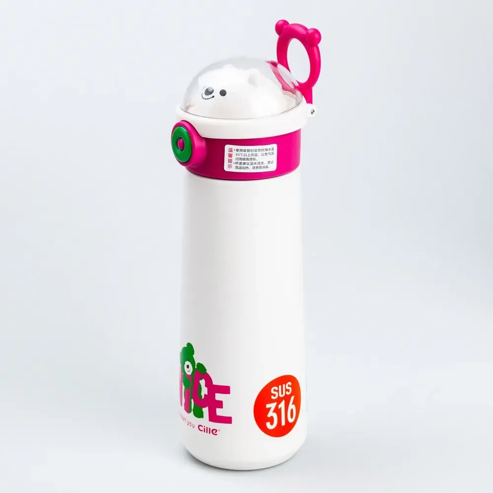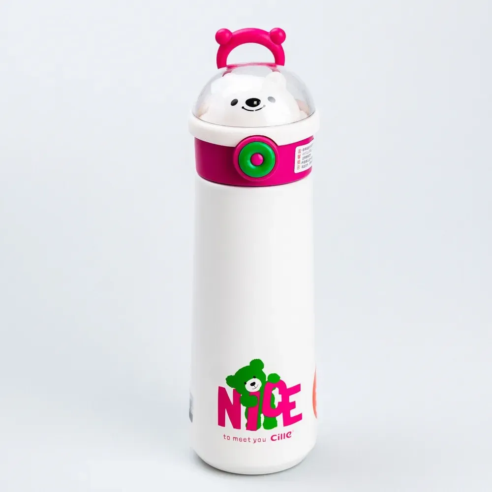 Термос дитячий 500 мл з напувалкою трубочкою "Ведмідь" Рожевий (HP17306R)
