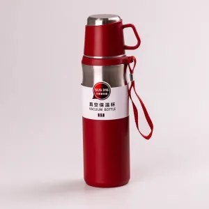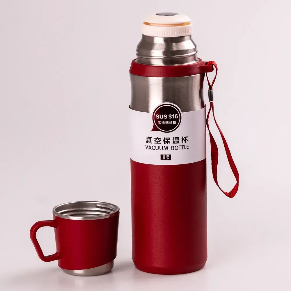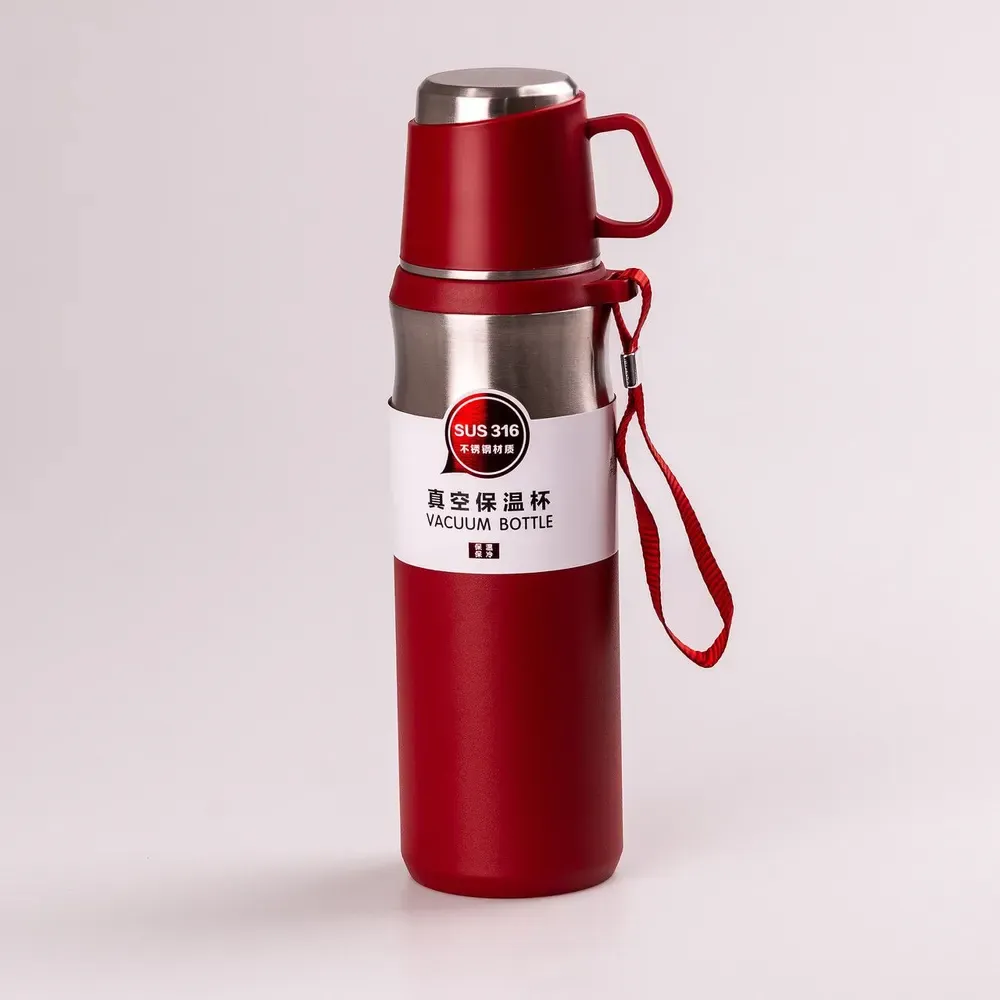 Термос із чашкою та ремінцем 600мл із нержавіючої сталі тепло до 12 годин Червоний (HPGM80155R)