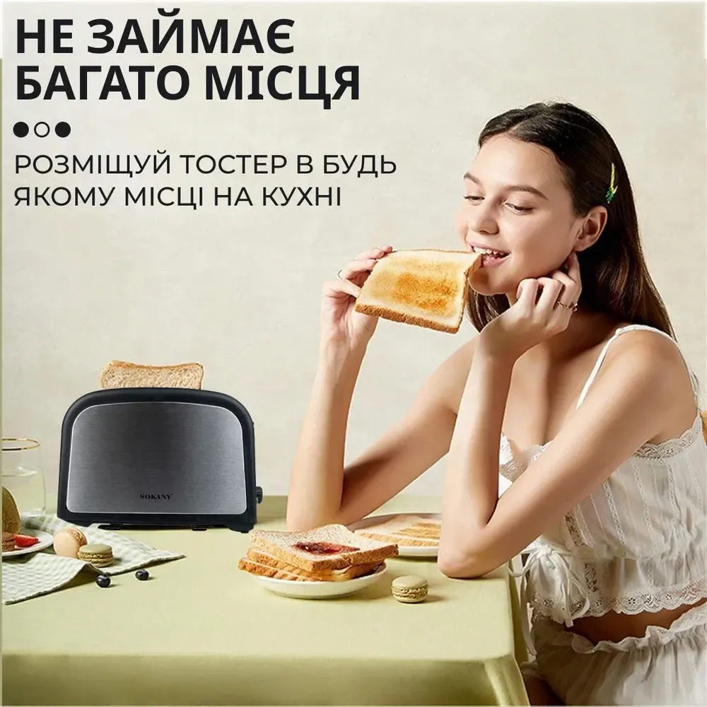 Тостер для хліба 7 температурних режимів на 2 скибочки з підігрівом 800 Вт Sokany HJT-008s (HJT008SBST)